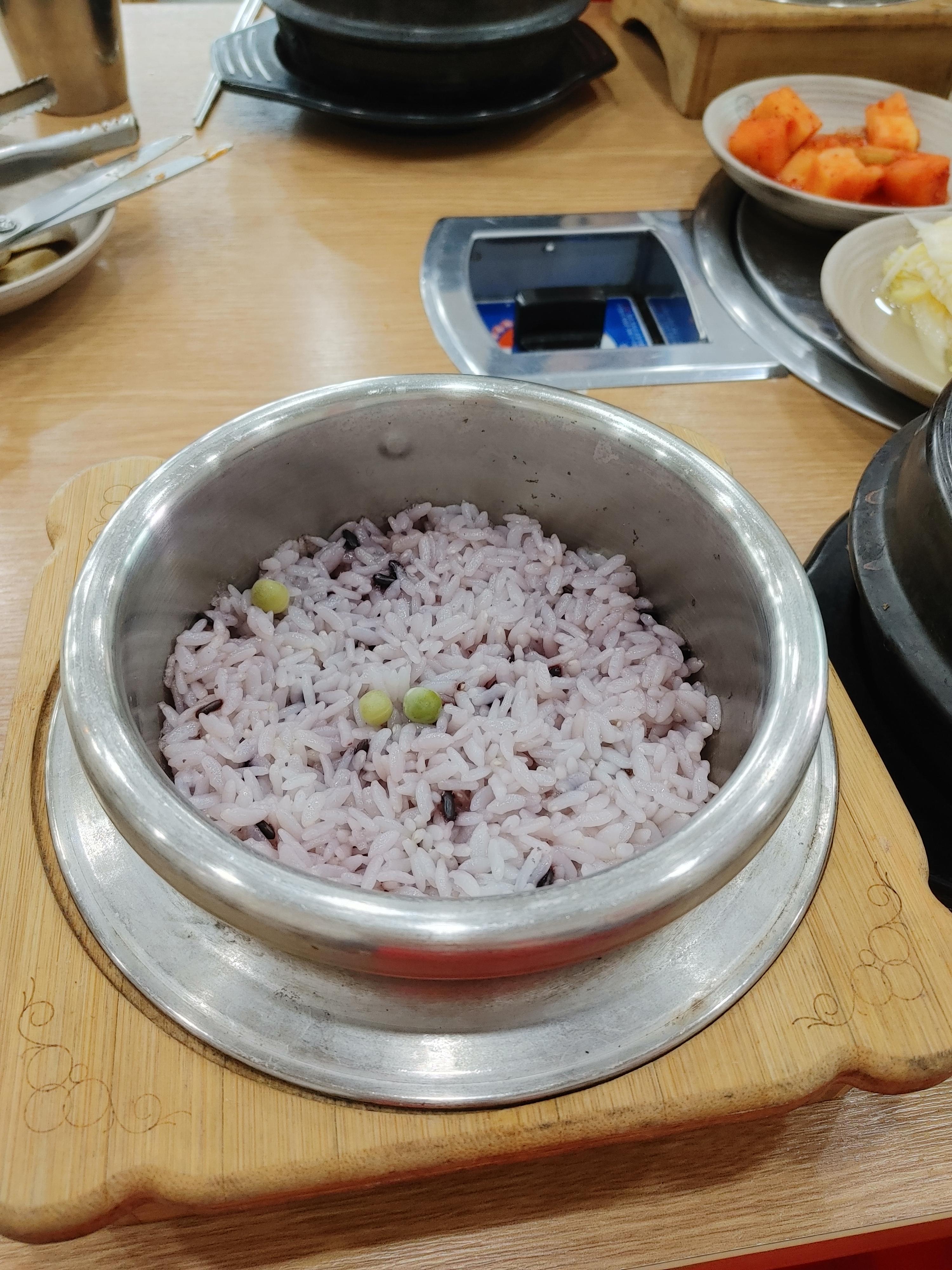 흑미 솥밥을 퍼 놓고 물을 부어 누룽지까지 야무지게 먹었다.