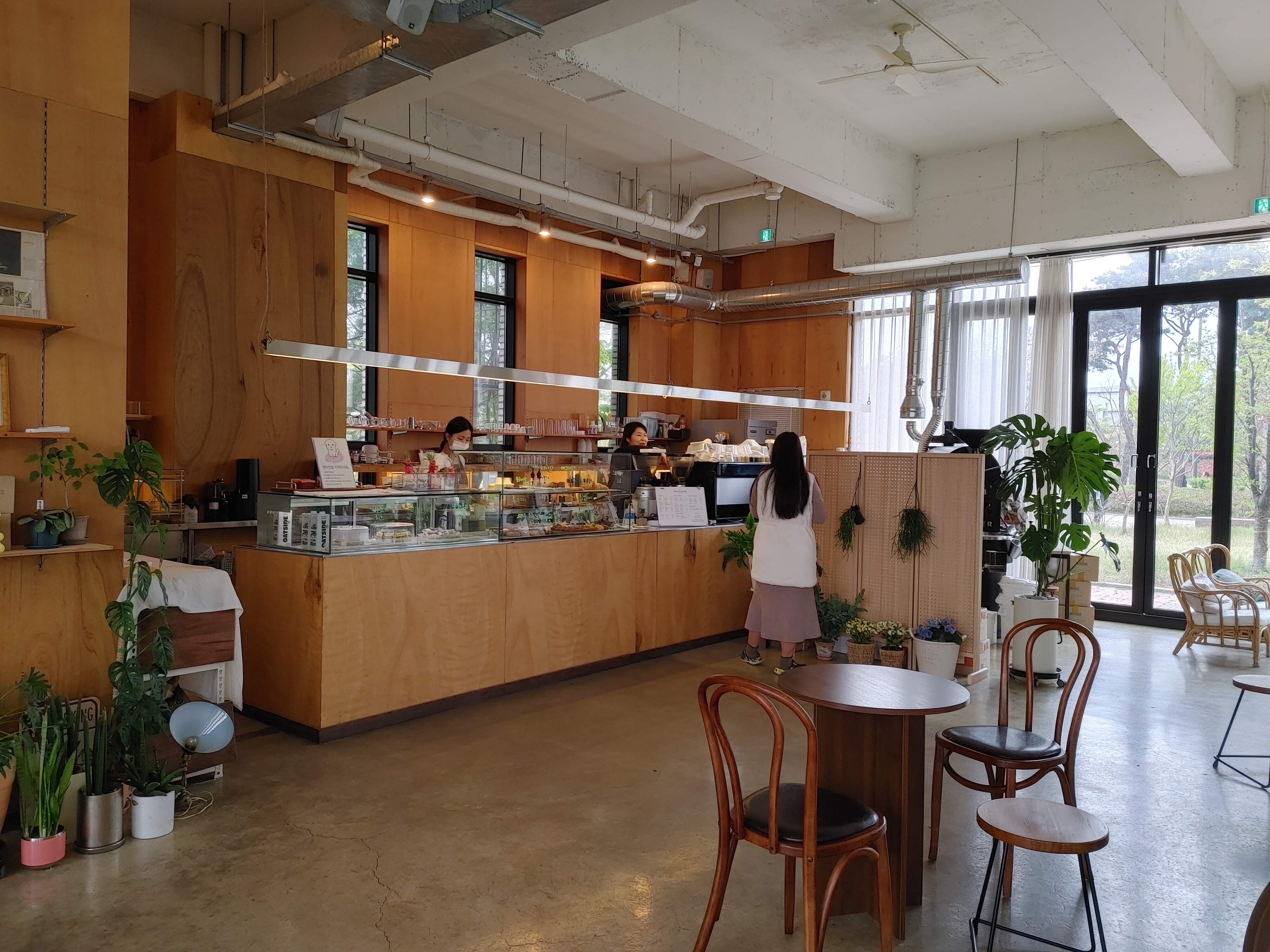 인테리어는 심플한 화이트&우드톤인데 초록초록 예쁜 식물들이 포인트가 되어 너무나 매력적인 공간이었다.