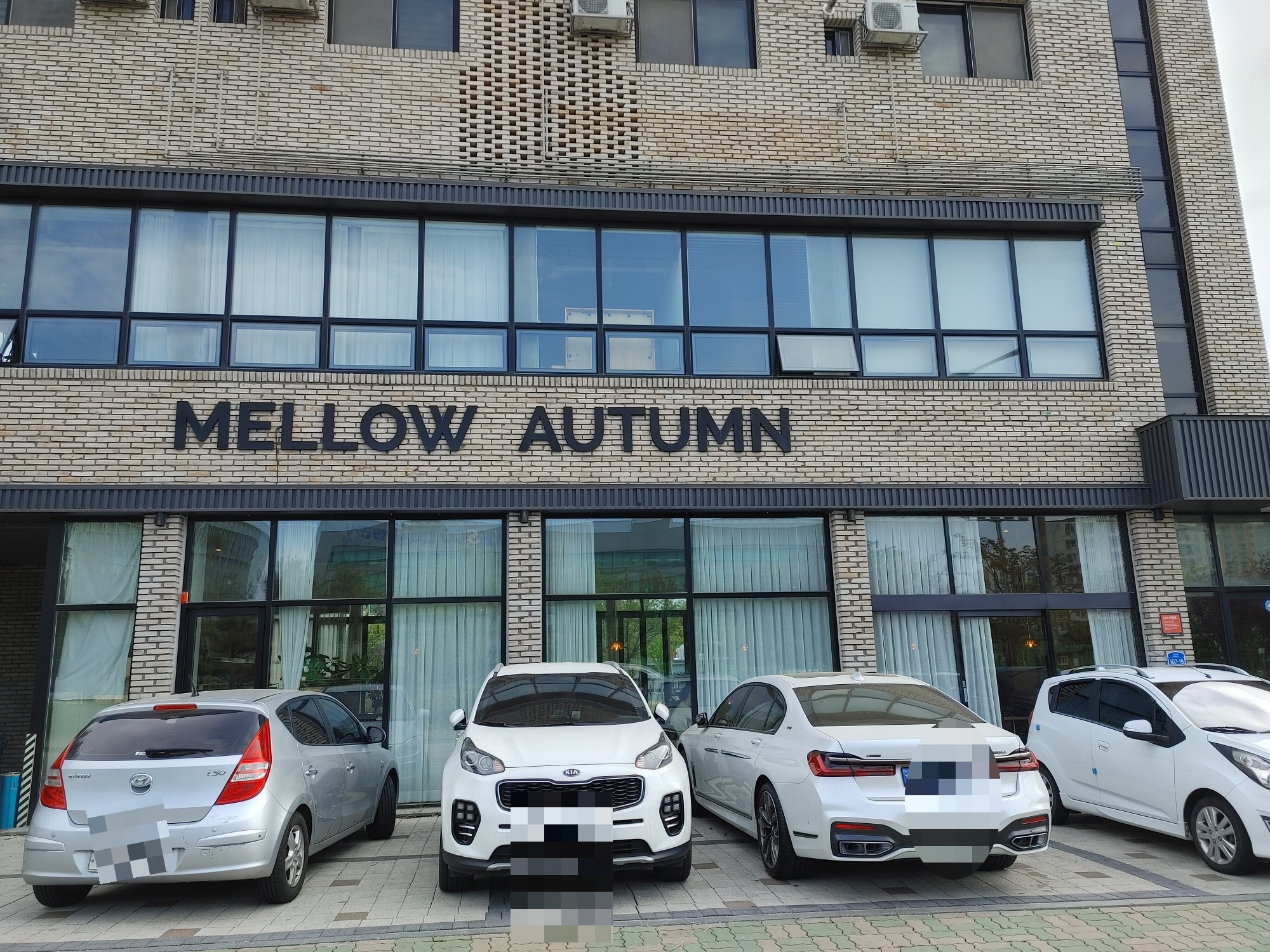 친한 언니의 추천으로 방문하게 된 카페 '멜로우어텀'. 매장 앞 주차가 가능했다. 카페 외관은 평범했는데 매장 안은 너무나 예뻤다.