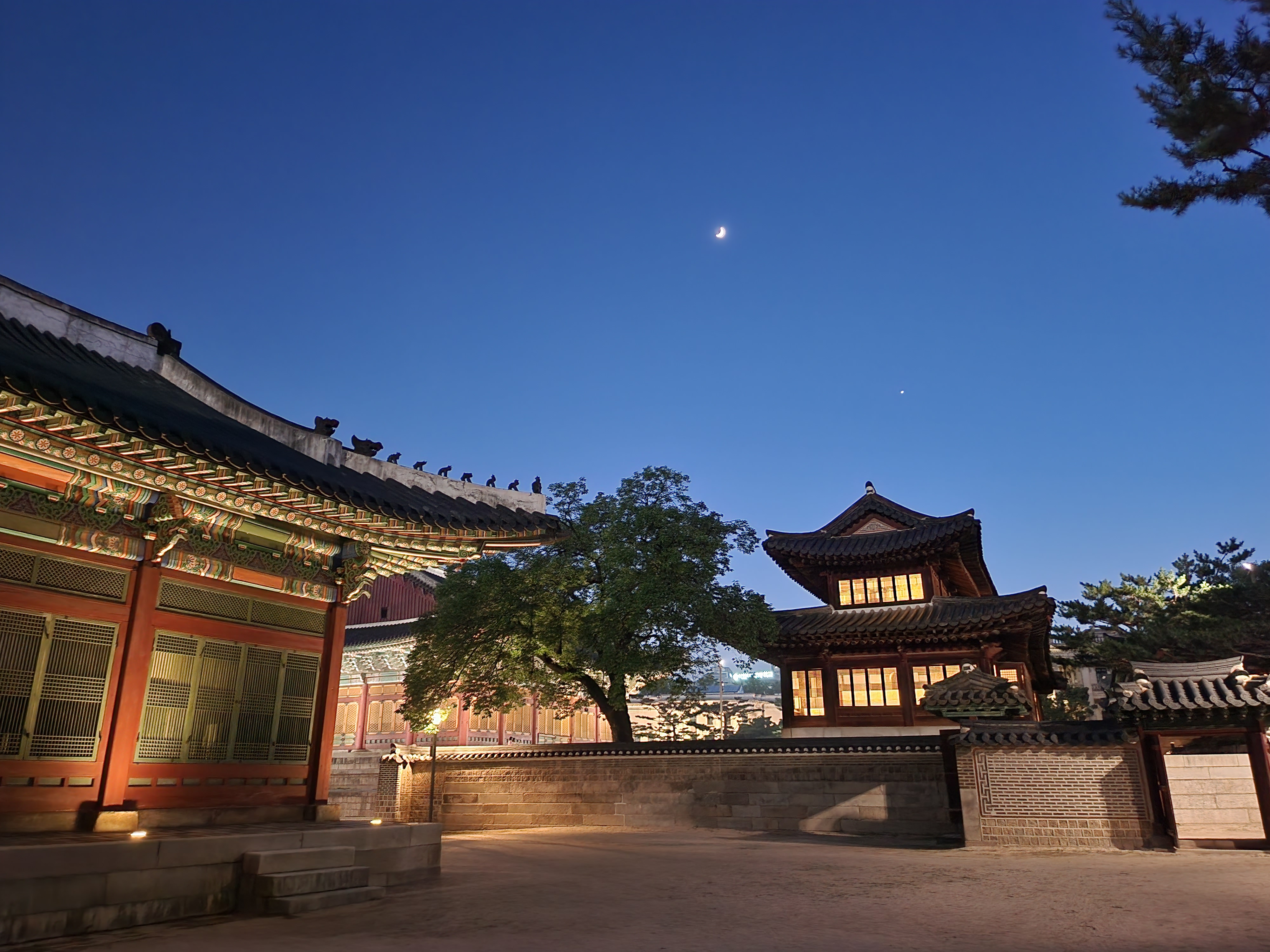 덕홍전 뒷마당도 참 예뻤다. 여기서도 사진을 엄청 많이 찍었다. 초승달까지 완벽했던 날!