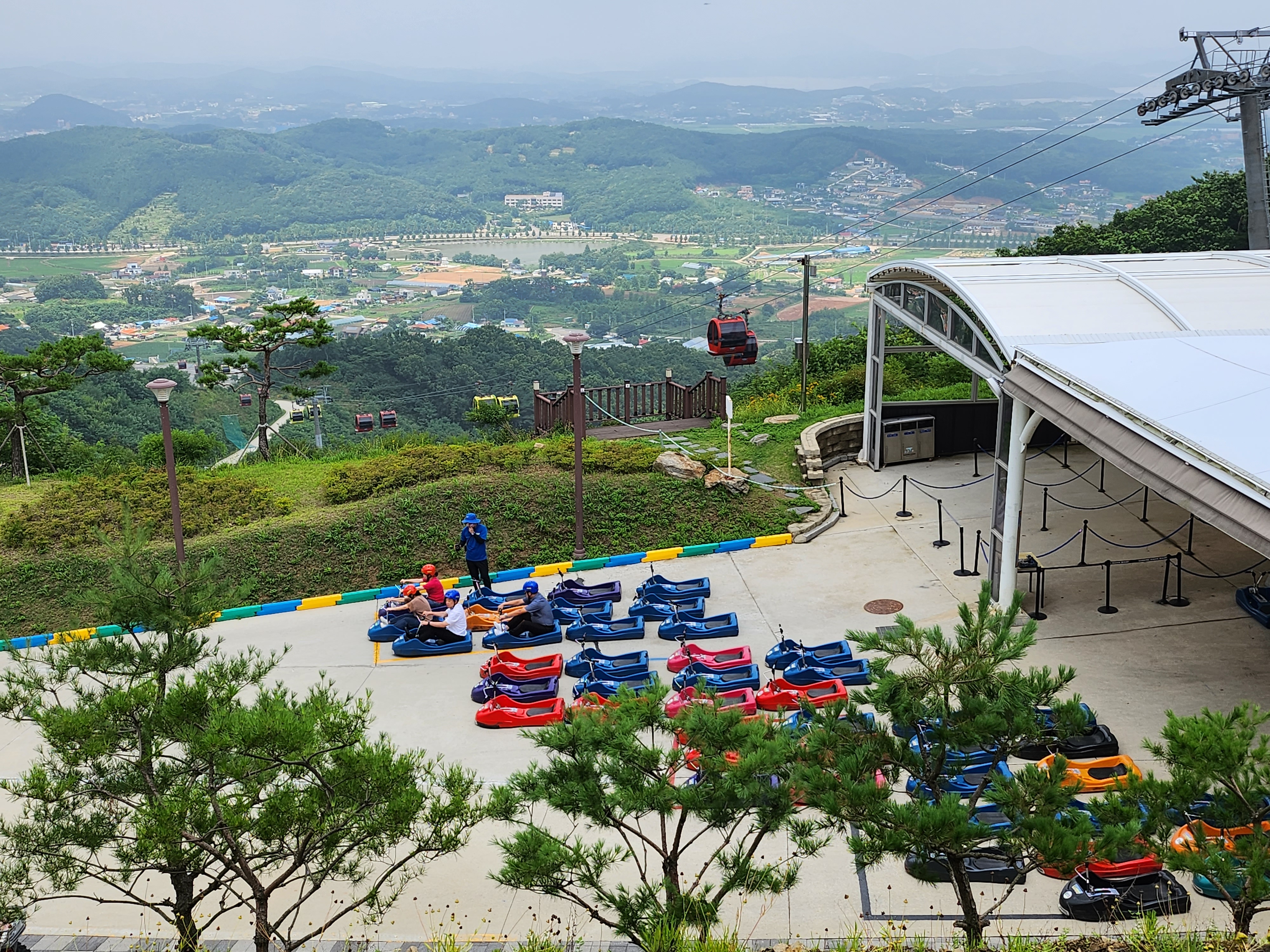 곤돌라를 타고 루지를 타러 올라가는 것도 재밌다. 정상 전망대에서 강화도를 내려다보는 뷰도 참 아름다웠다. 전망대를 한 바퀴 둘러보고 루지를 타고 내려오면 딱 좋은 코스다. 1.8km 장거리 루지코스로 스릴을 즐길 수 있었다. 가격은 성인 기준 1회 탑승 19,000원이다.