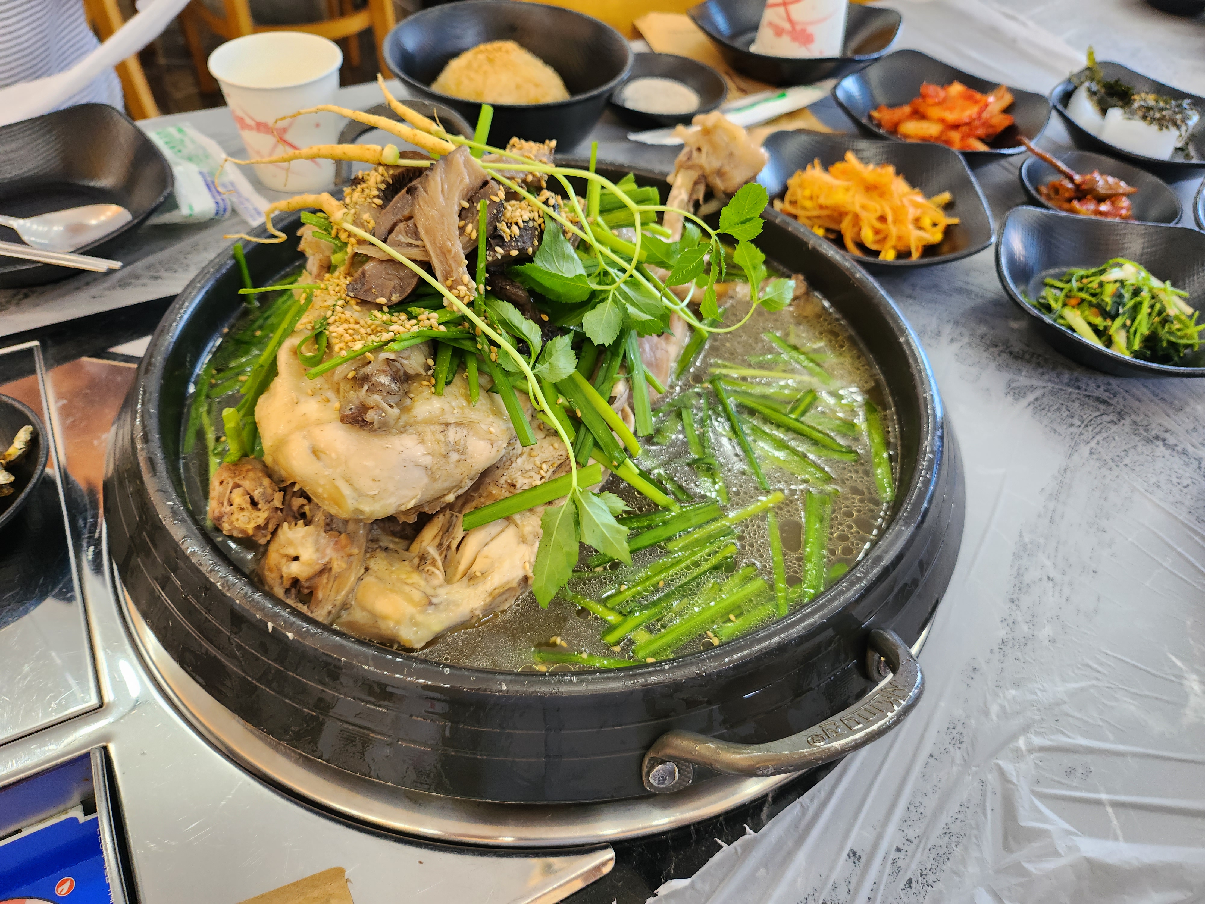 요즘 한창 날씨가 더운데 몸보신하기 좋은 '먹골촌'식당을 추천한다. TV에 방영된 맛집이고 직원분들도 친절하고 음식도 깔끔하고 맛있어서 추천하는 곳이다. 능이백숙과 도토리 전, 그리고 동동주까지 한잔 하면 아주 궁합이 좋다.