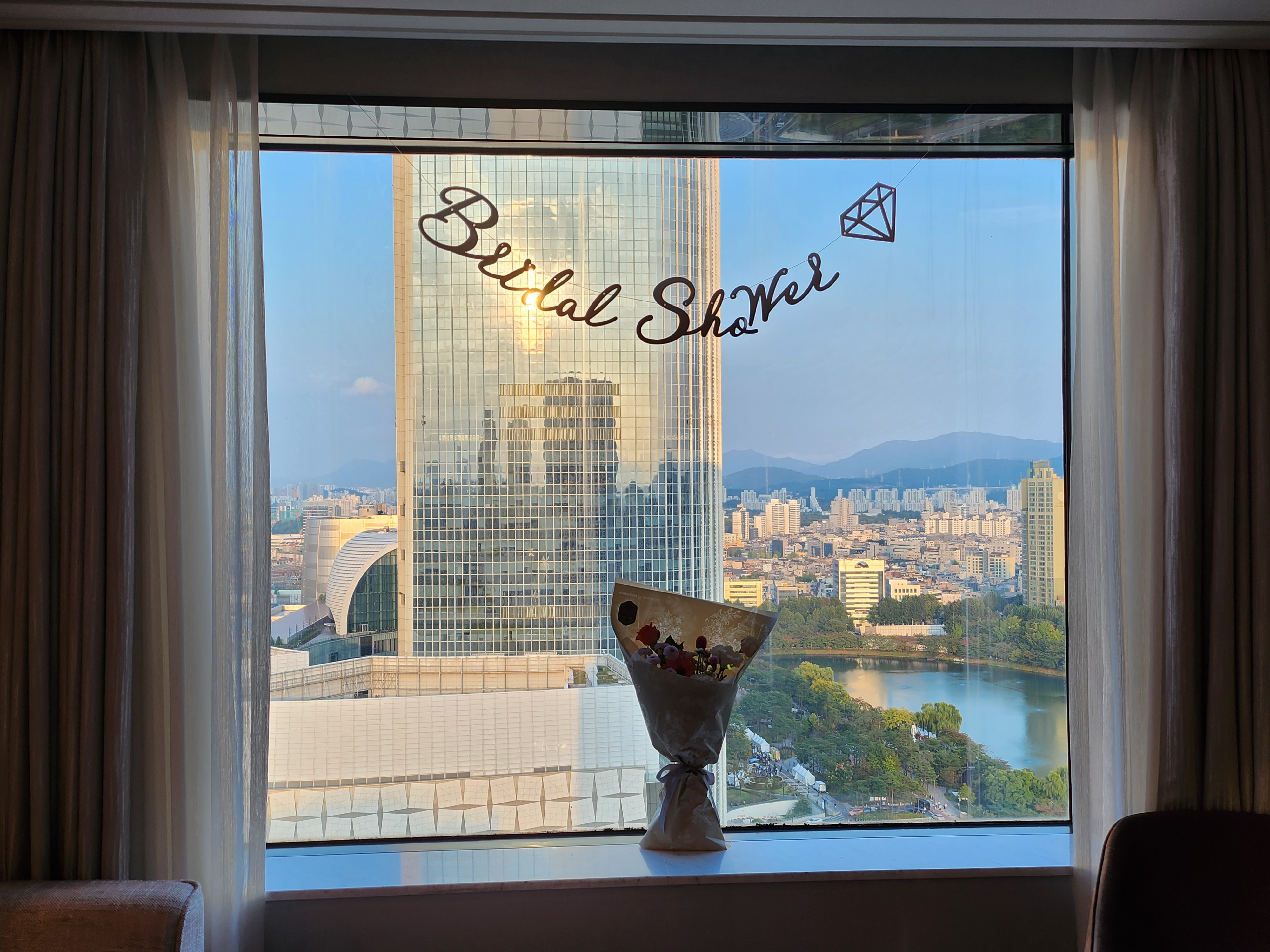 우리는 호텔에서 조촐한 파티도 했다. 브라이덜 샤워를 했는데 풍경이 너무 예뻐서 딱히 꾸미지 않아도 진짜 예뻤다. 👰🎊❣️