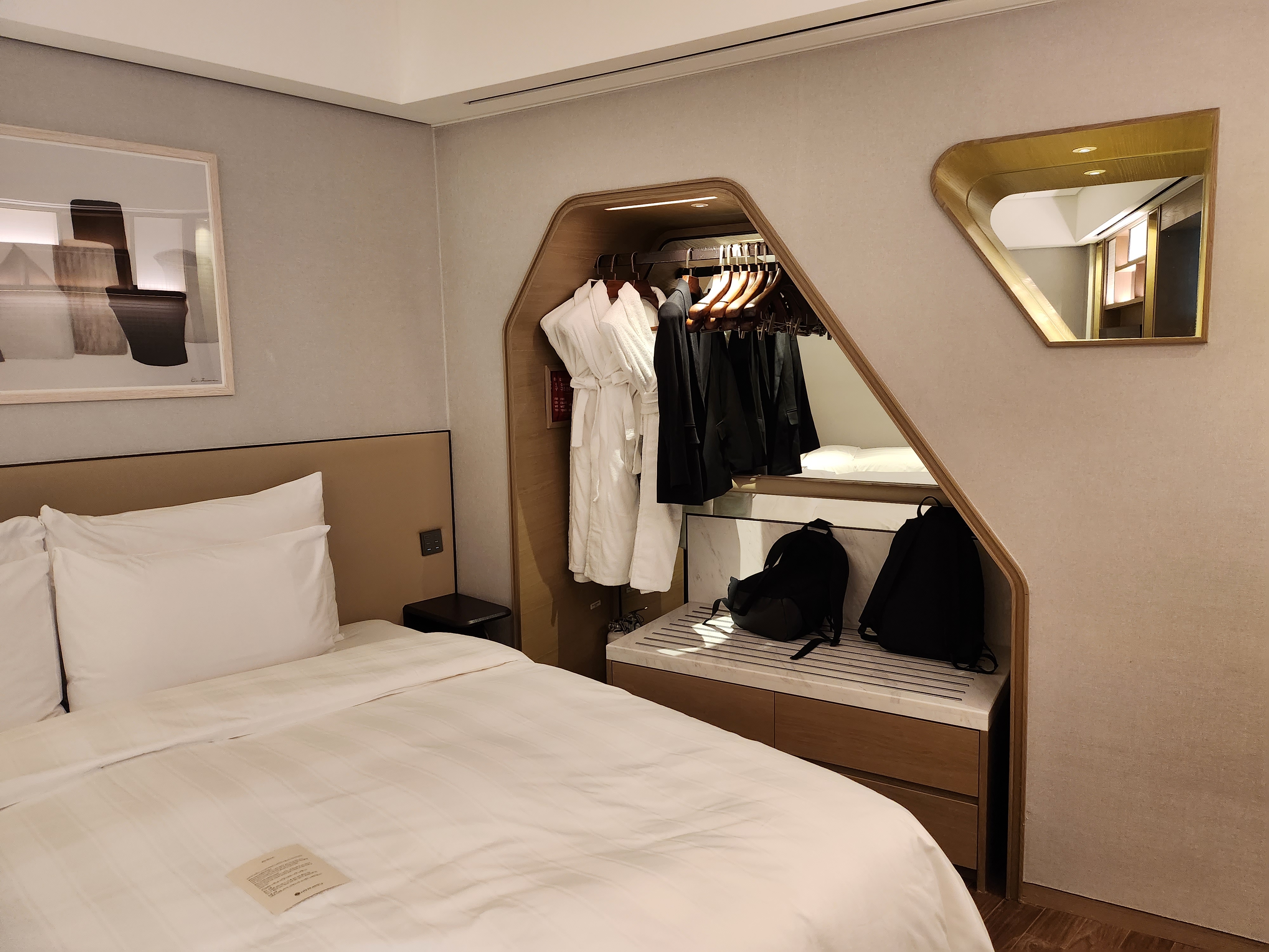 침실은 따로 공간이 분리되어 있었고 트윈 베드가 나란히 있었다. 침구가 깨끗하고 좋았다.