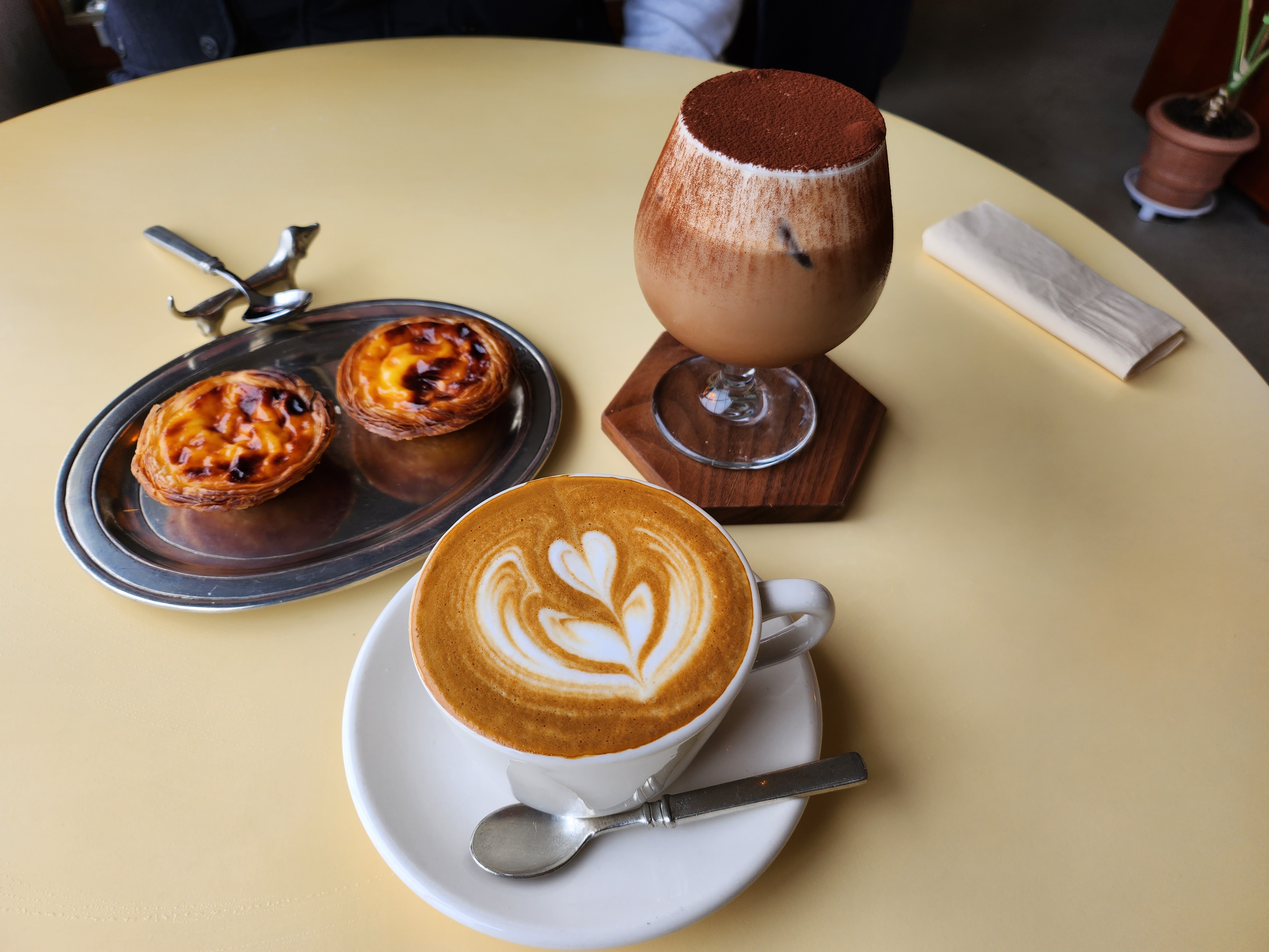 음료는 자리로 직접 가져다주신다. 음료도 맛있고 에그타르트도 정말 맛있었다. 우연히 방문한 카페였는데 진짜 너무 만족스러운 카페였다. 게다가 커피잔과 컵받침 하나도 얼마나 예쁜지, 먹는 내내 기분이 좋았다. 이곳의 유일한 단점은 음료가 매우 늦게 나온다는 점이었다. 사장님 혼자 계신데 손님이 엄청 많았다. 우리가 방문했을 때만 해도 1-2팀 있었는데 어느데 꽉 참. 사장님은 사람이 몰려와서 당황하신 것 같은 모습이었다. 게다가 주방 동선이 안 좋아서 왔다 갔다 하시느라 시간이 더 소요되는 것 같았다. 그런데 음료가 너무 맛있어서 기다릴 수 있는 곳이다.