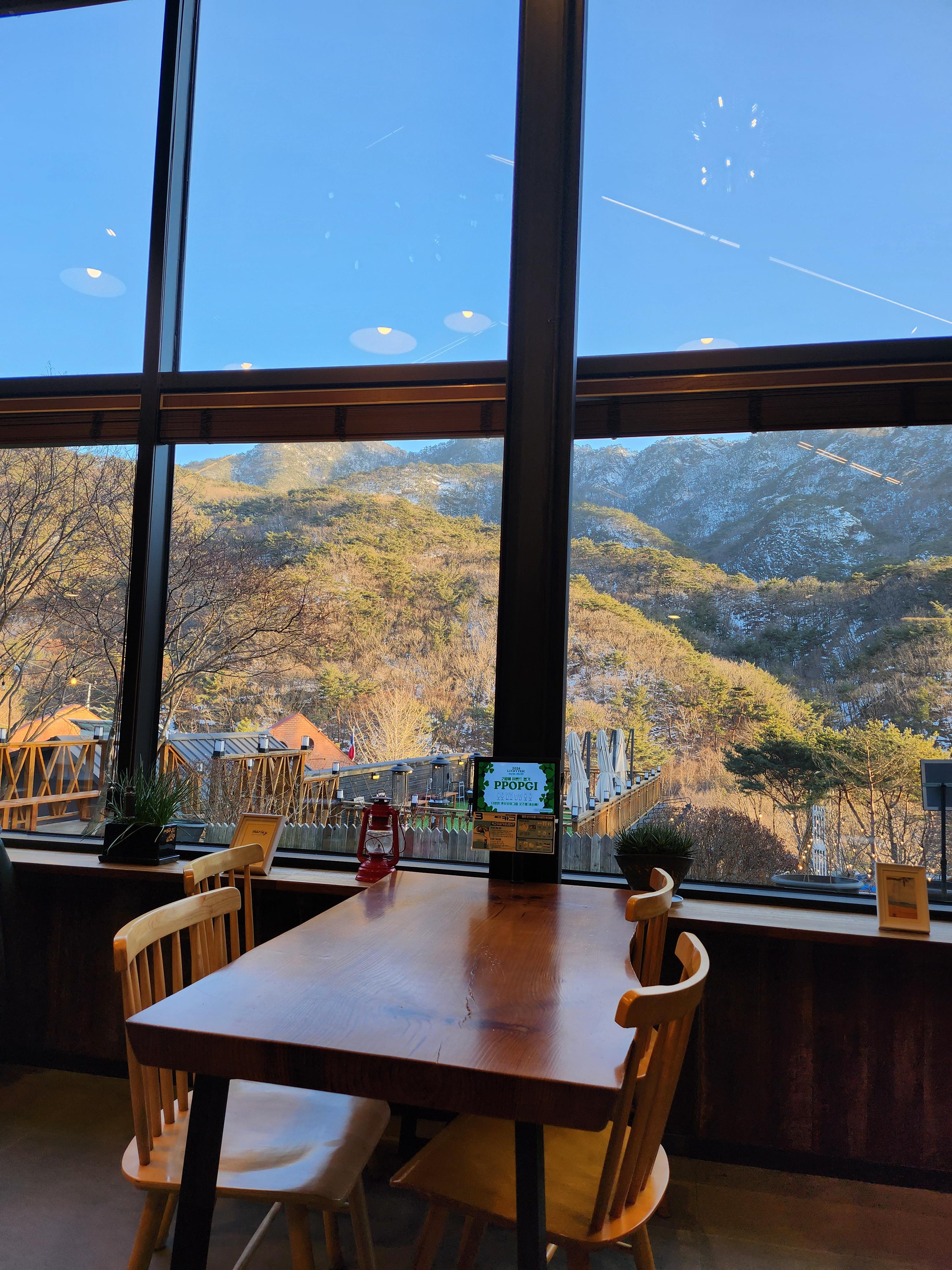 내부에 넓은 창이 많아서 충주호뷰 감상하기 좋았다.