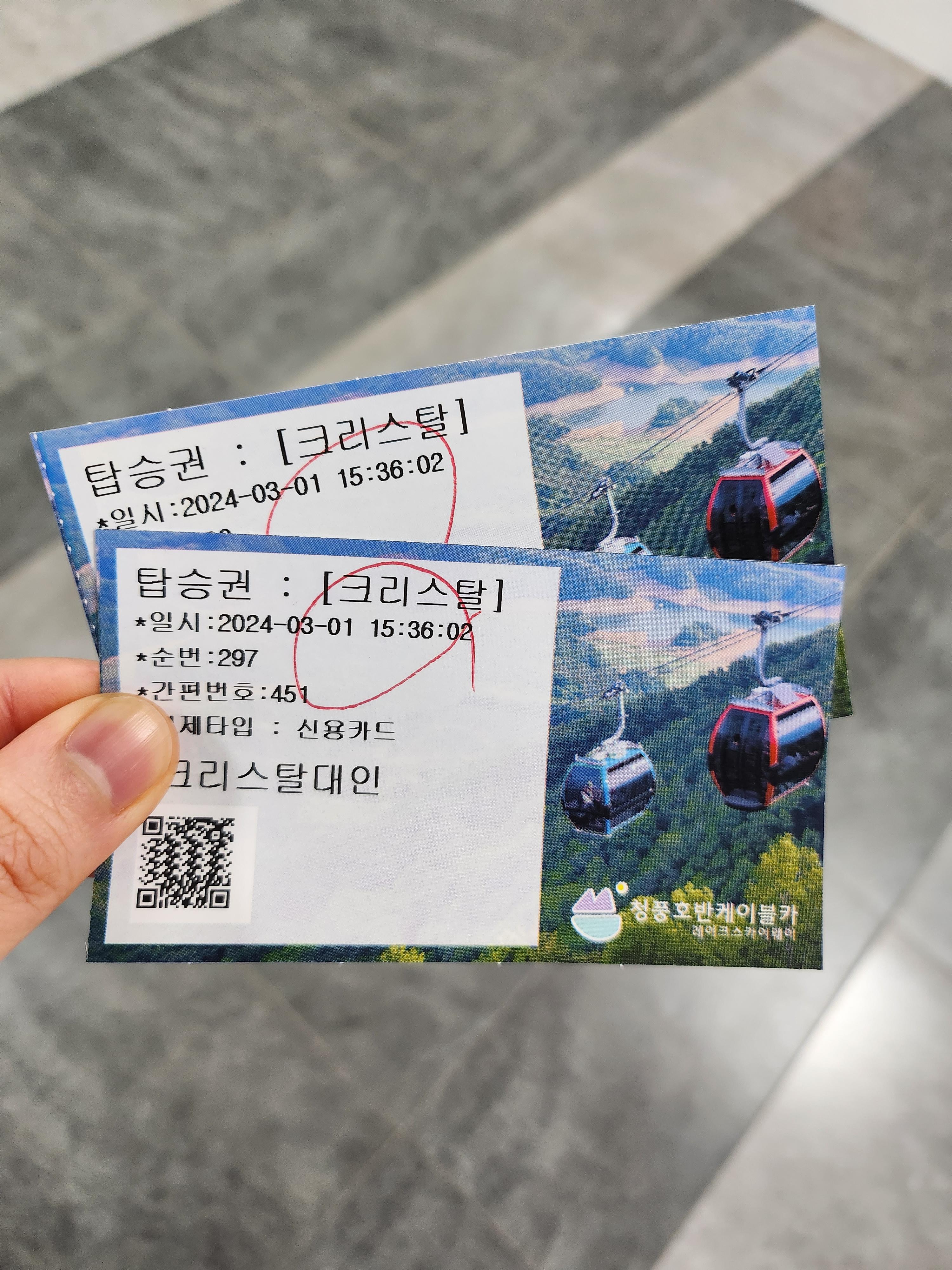 제천 대표 관광지 '청풍호반케이블카'. 탑승권 가격은 성인기준 일반탑승권 18,000원, 크리스탈 탑승권 23,000원이다.
