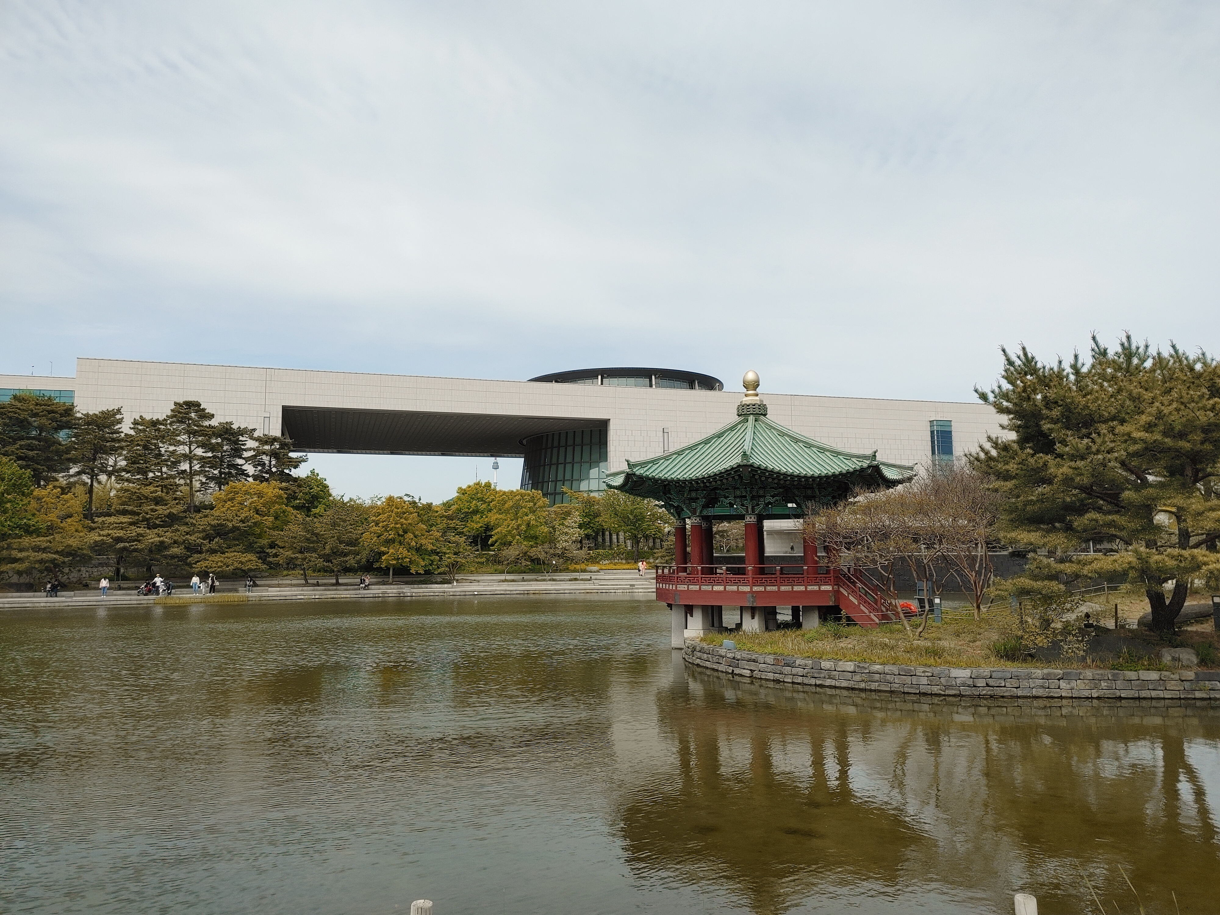 용산 가볼 만한 곳 추천 '국립중앙박물관'. 박물관 밖에는 큰 인공연못이 있고 여유롭게 산책하기 좋다.