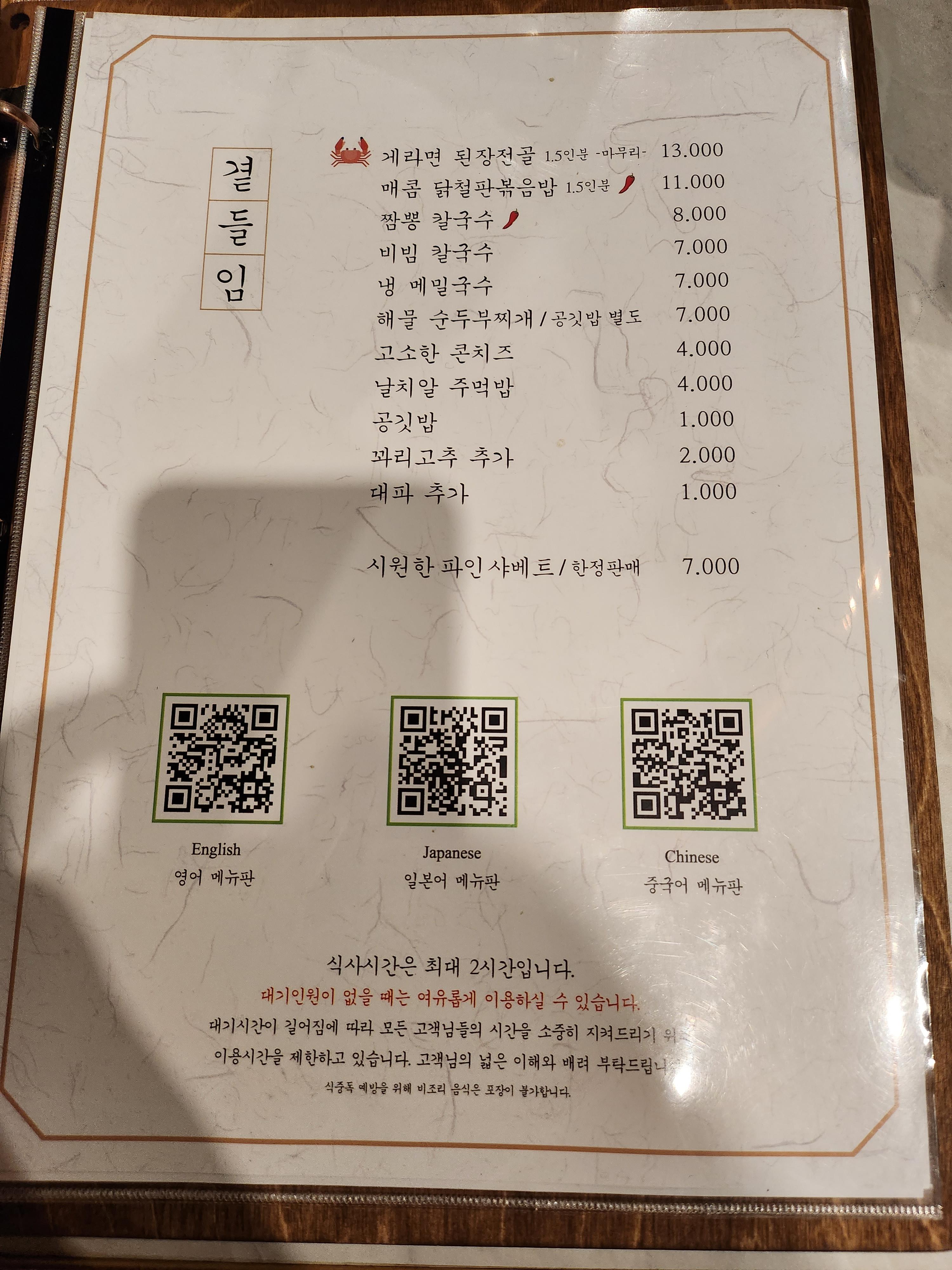 냉메밀국수를 주문했다. 가격은 7,000원이었다. 맛은 평범한 분식집 소바맛이었지만 닭갈비랑 같이 먹으니 굉장히 잘 어울려서 맛있게 잘 먹었다. 다음에 방문하면 닭목살구이랑 철판볶음밥도 먹어보고 싶다.