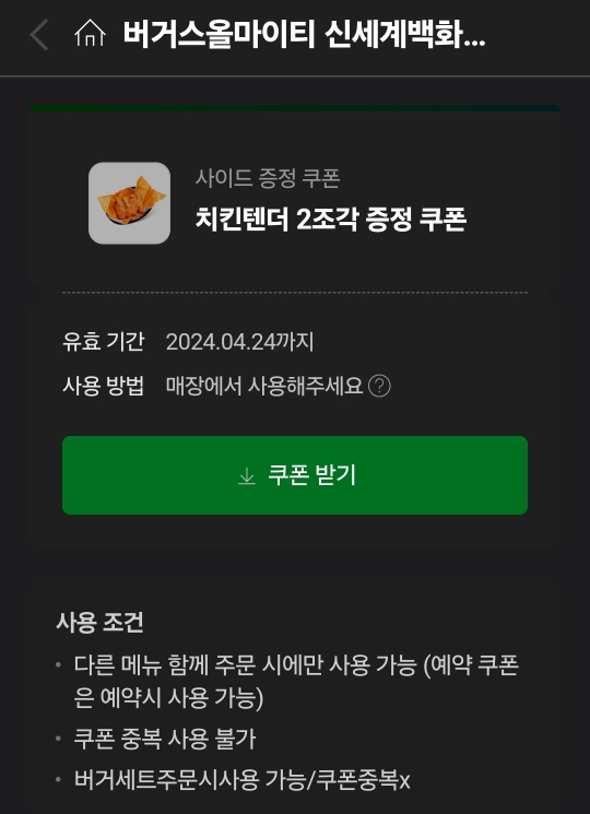 네이버에서 쉽게 쿠폰을 다운로드할 수 있고 사용 조건이 까다롭지 않아서 방문하시는 분들은 꼭 챙기시길 바란다. 공짜라서 그런지 더 맛있었던 치킨텐터.ㅎㅎㅎ