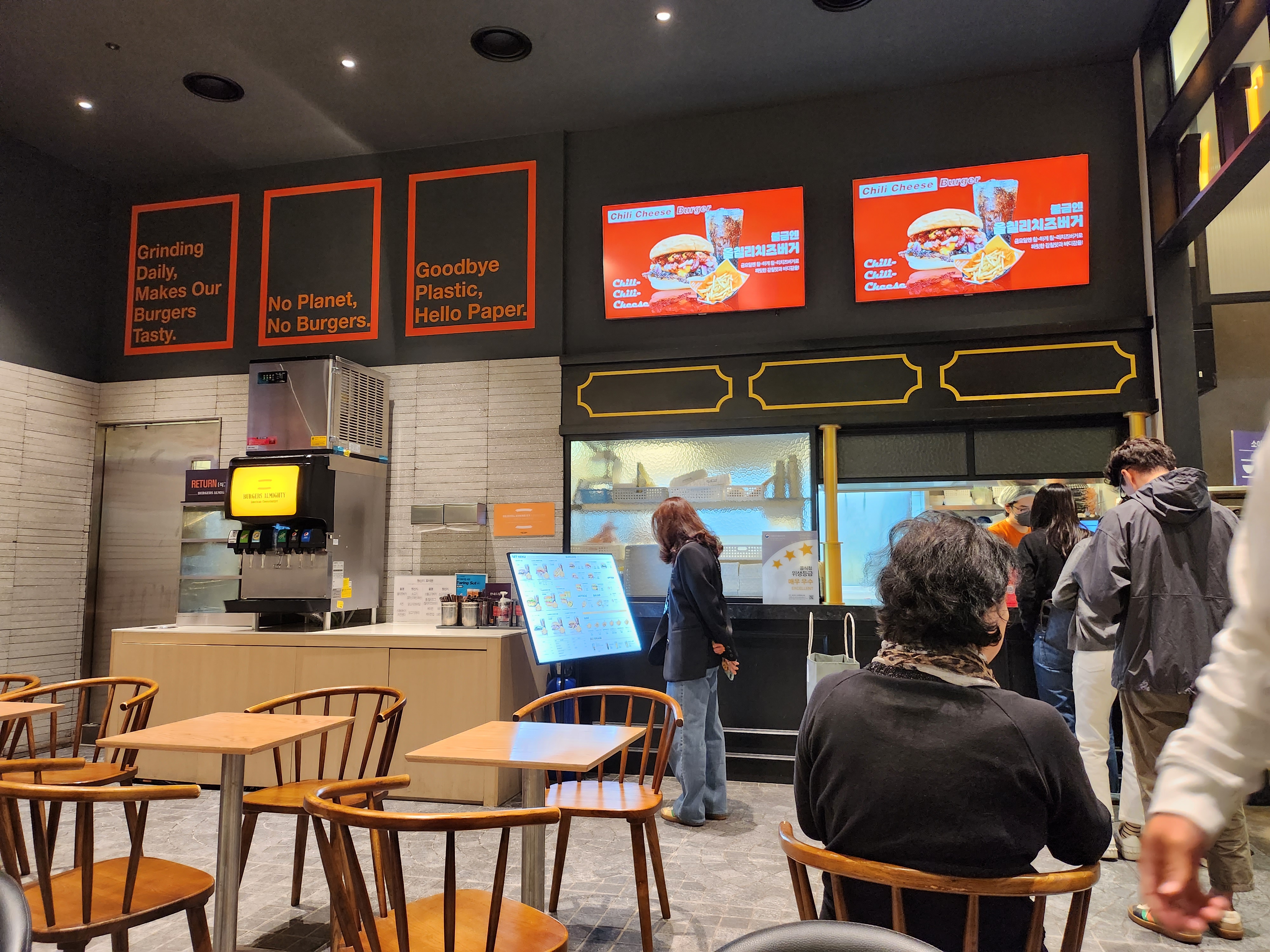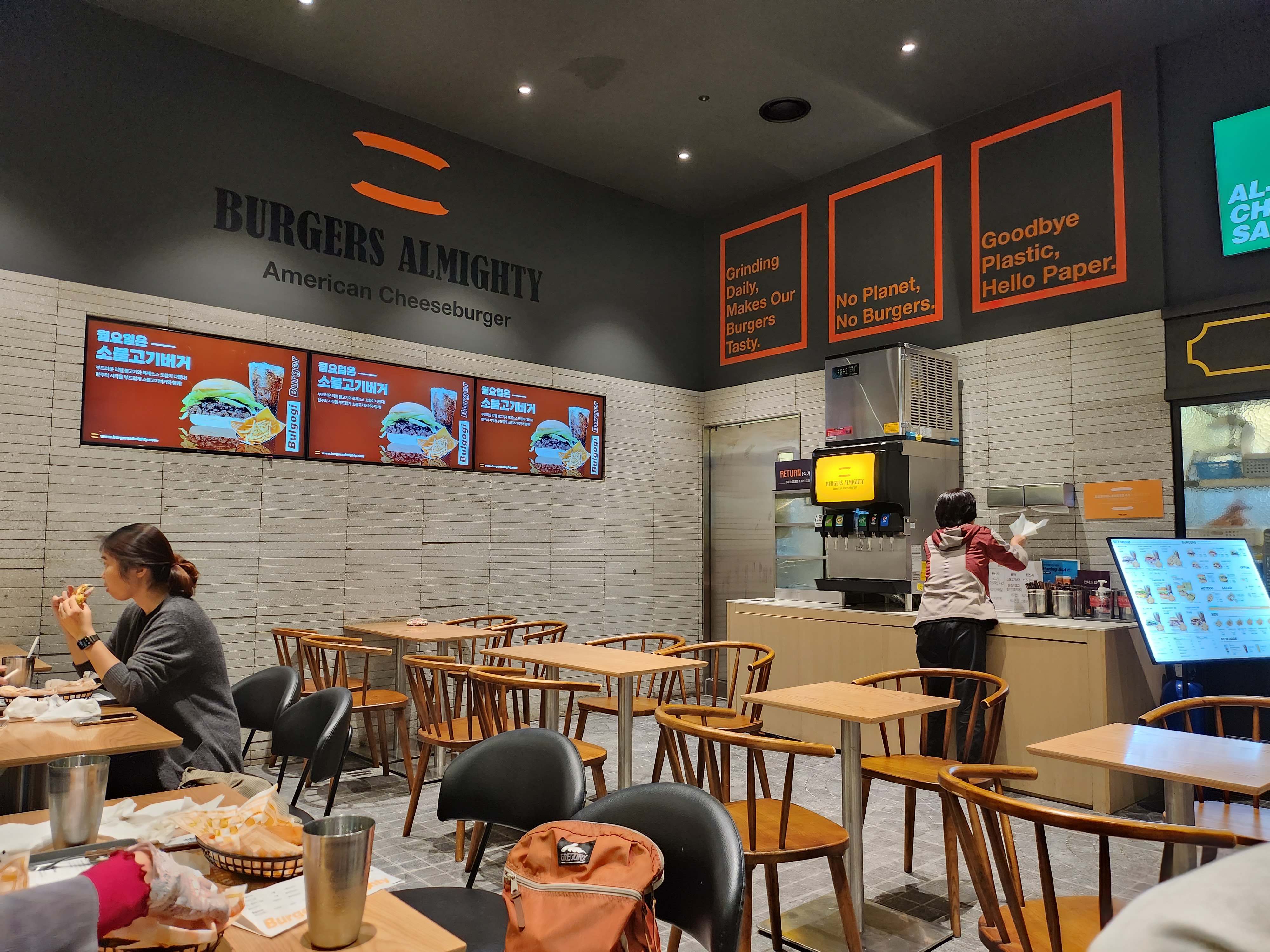 회현역 입구 바로 근처에 있는 버거스올마이티. 테이블이 꽤 많았다.