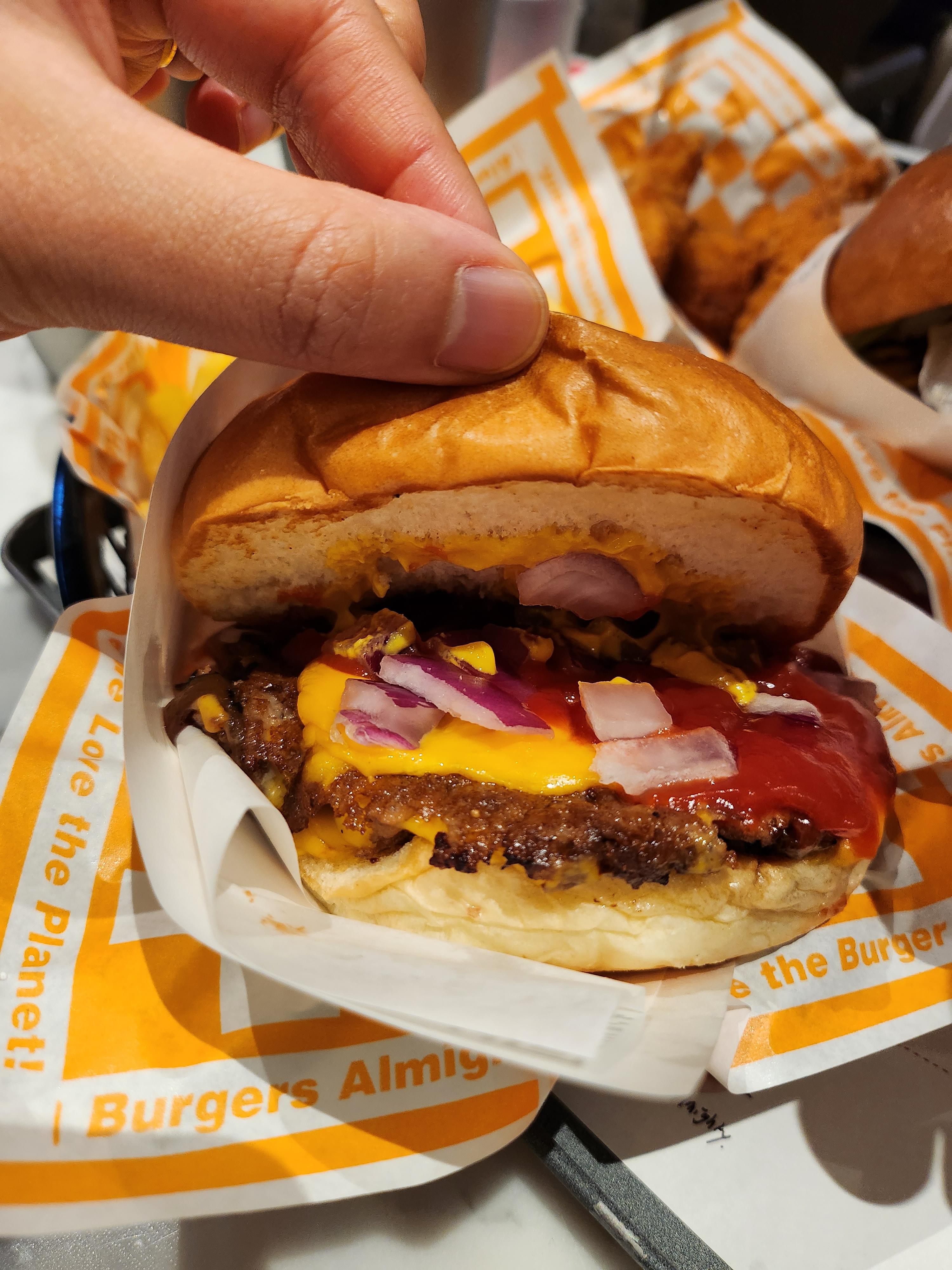 올치즈버거는 스매시패티, 아메리칸 치즈, 토마토와 적양파를 곁들였다. 맛있지만 살짝 느끼하고 미국 버거 스타일이었다. 올치즈버거 셋트 가격은 14,500원이다.