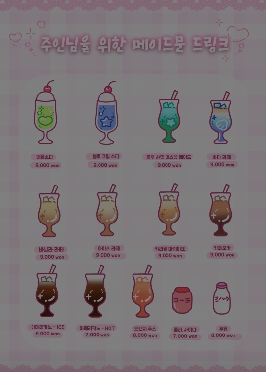 이건 메이드문 드링크 메뉴판이다.