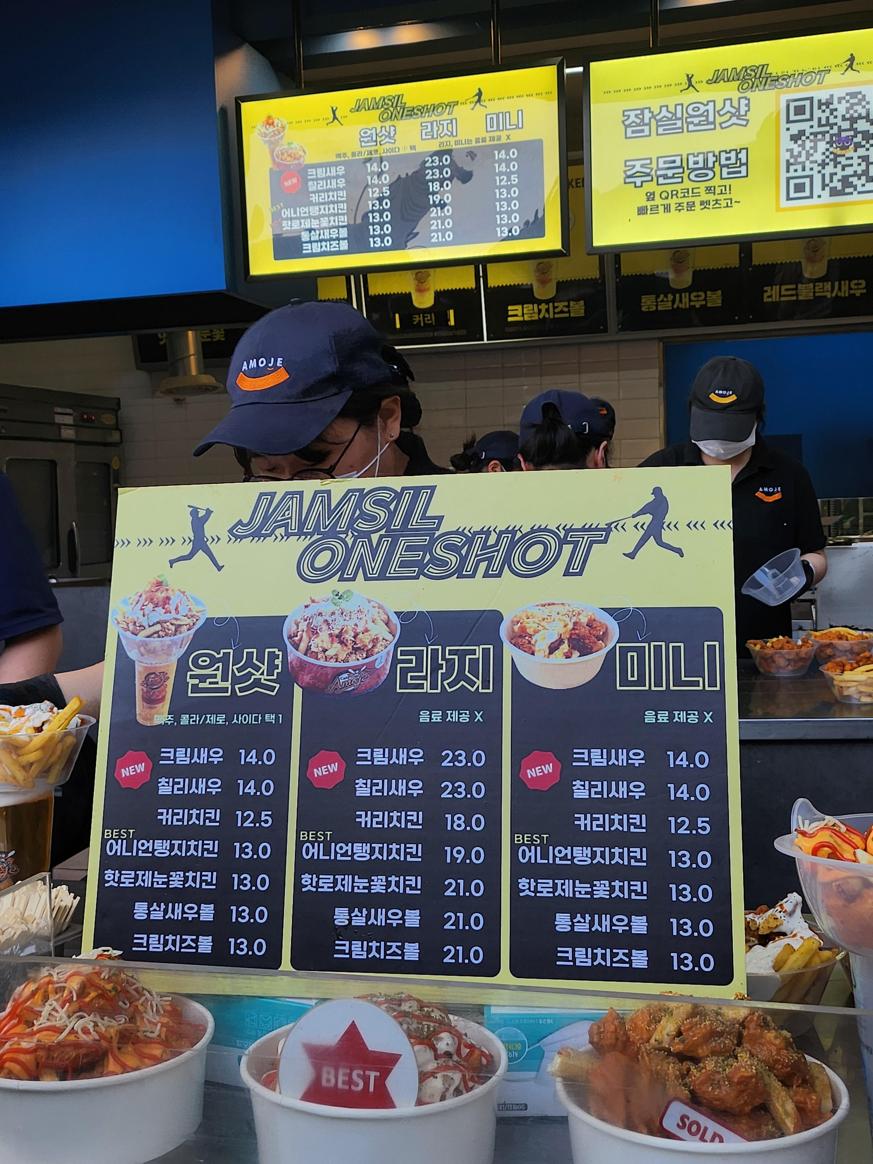 잠실야구장에서 가장 유명한 먹거리중 하나인 '잠실 원샷'. 작년에는 '델리스푼 바이 카페 아모제'라는 상호였는데 같은 위치이긴 하나 현재는 상호명이 '잠실 원샷'으로 바뀌었다. 여전히 줄이 길었다.