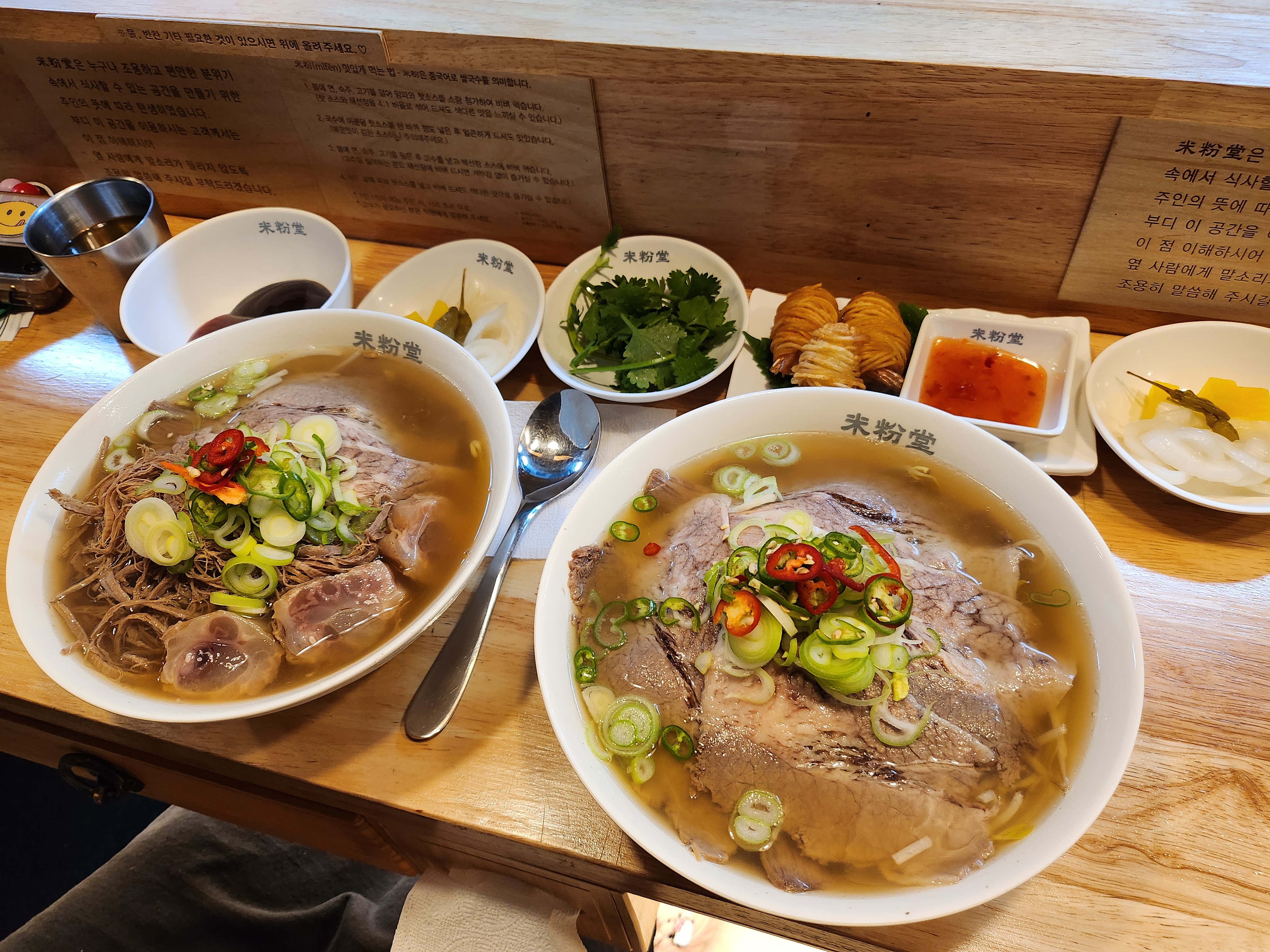 모든 재료가 신선하고 육수는 시원하고 개운한 맛이 일품이다. 대표메뉴 차돌박이 쌀국수 가격은 9,500원, 차돌양지힘줄 쌀국수는 12,000원이다.