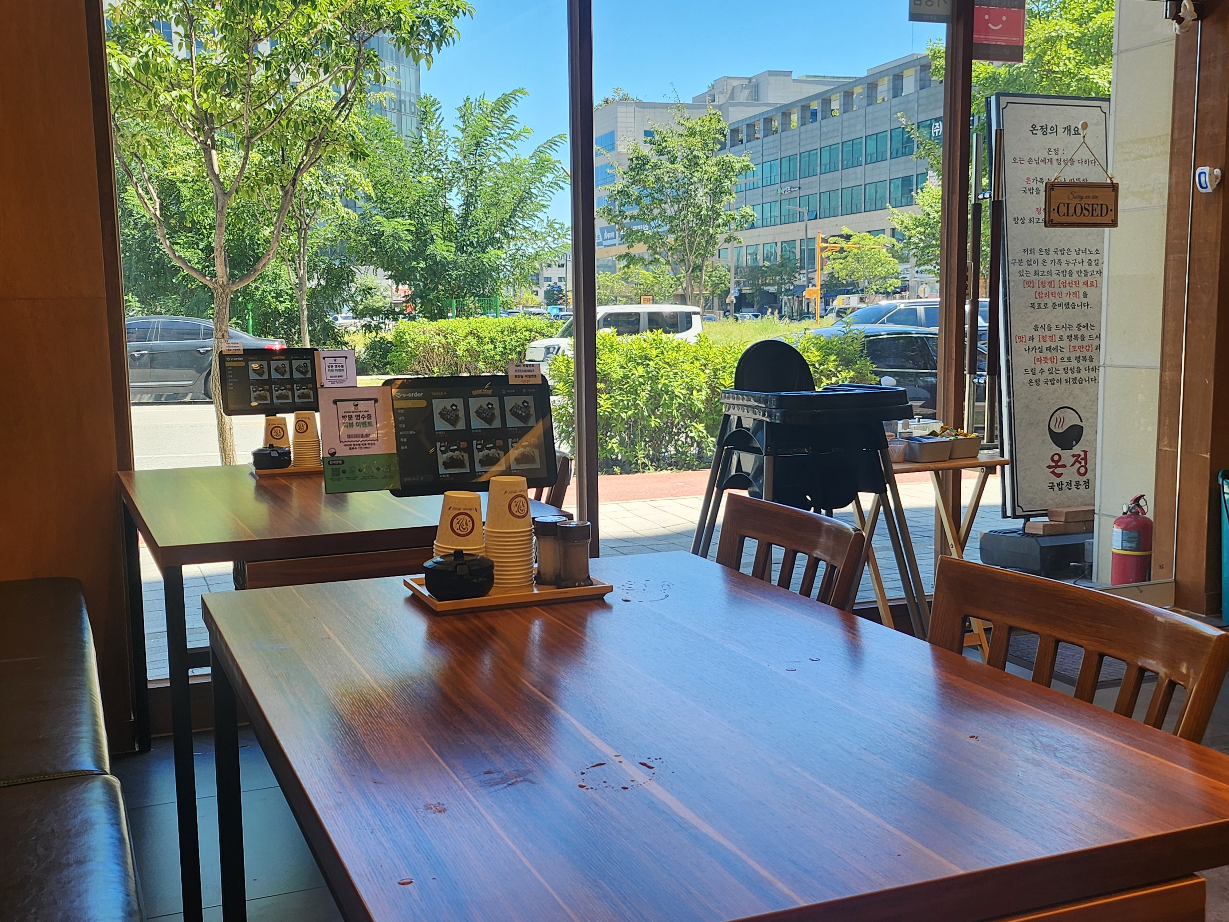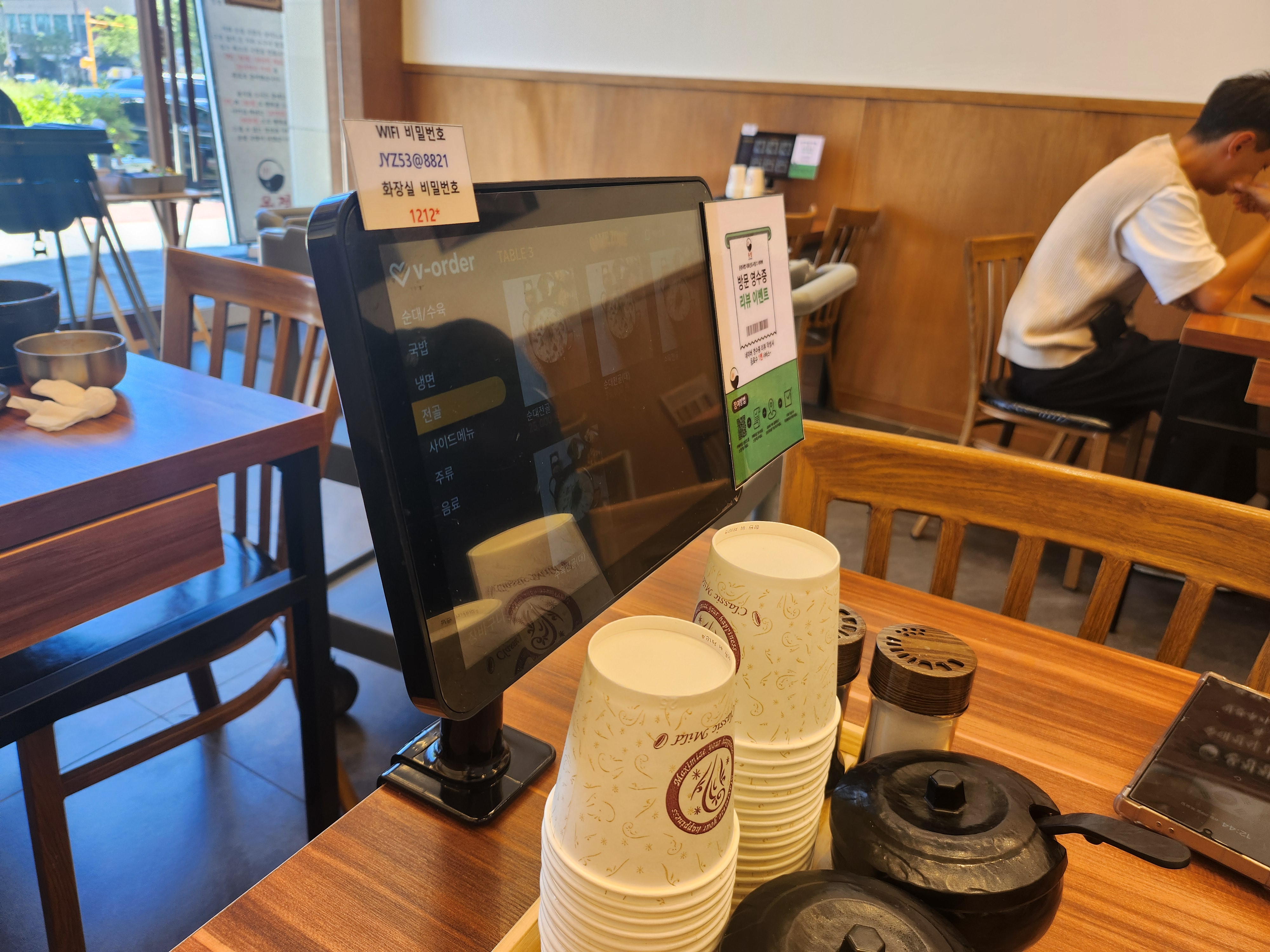 자리에 있는 태블릿으로 주문을 했다. 결제는 식후 카운터에서 따로 진행하는 시스템이었다. 온정국밥에서 네이버 영수증 리뷰 이벤트도 진행하고 있어서 참여하고 탄산음료를 서비스로 받았다.
