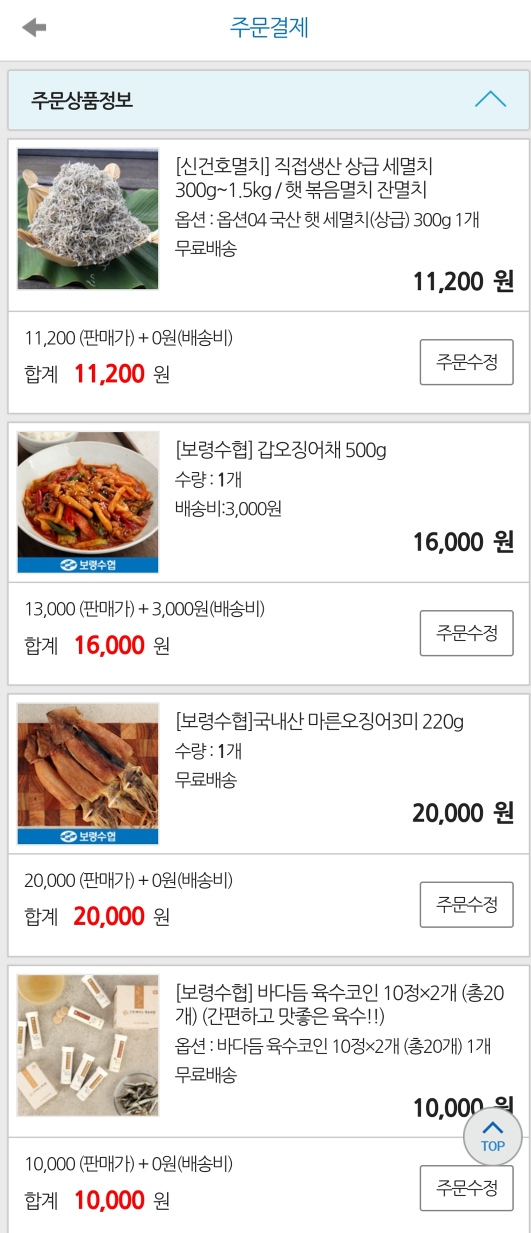 쿠폰 사용 방법이 어렵지는 않았는데 아쉬운 점은 상품 한 품목당 1번의 쿠폰 적용만 가능하다는 점이었다. 그래서 같은 상품 여러 개의 쿠폰 적용을 원하면 각각 따로 구입해야 한다. 그리고 생물 수산식품의 경우에는 택배비가 별도 (아이스팩 포장 때문인 듯)여서 같은 상품을 따로 구입하면 택배비가 여러 번 발생하는 점은 아쉬웠다.