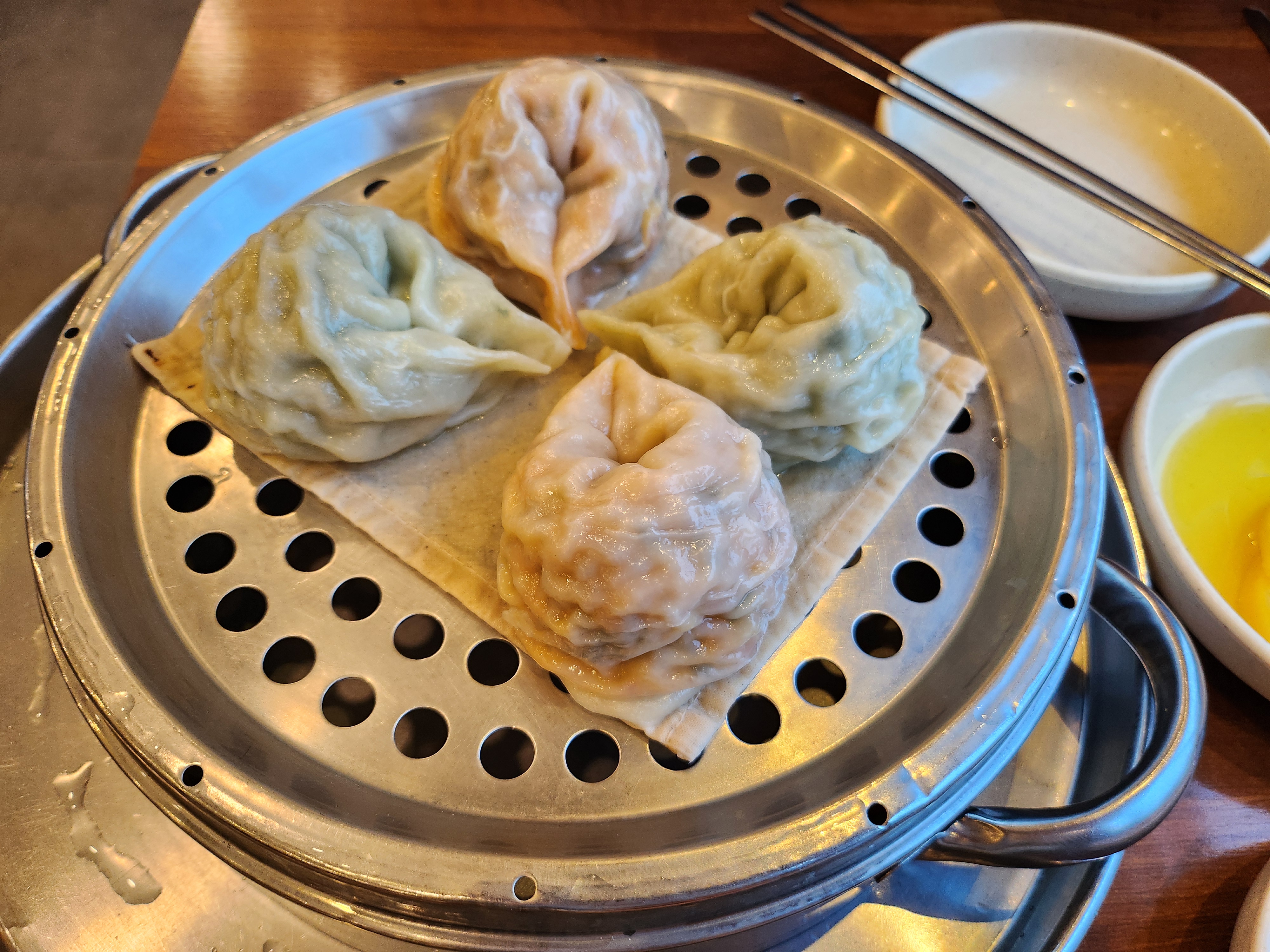 반반(김치,고기) 왕만두의 가격은 5,000원이다. 속이 꽉 차고 촉촉하고 부드럽게 쪄진 왕만두. 예전에는 꼬마만두라는 메뉴가 있었는데 이제는 보이지 않아 아쉽다. 하지만 왕만두도 맛있다. 특히 고기만두... 최고...!