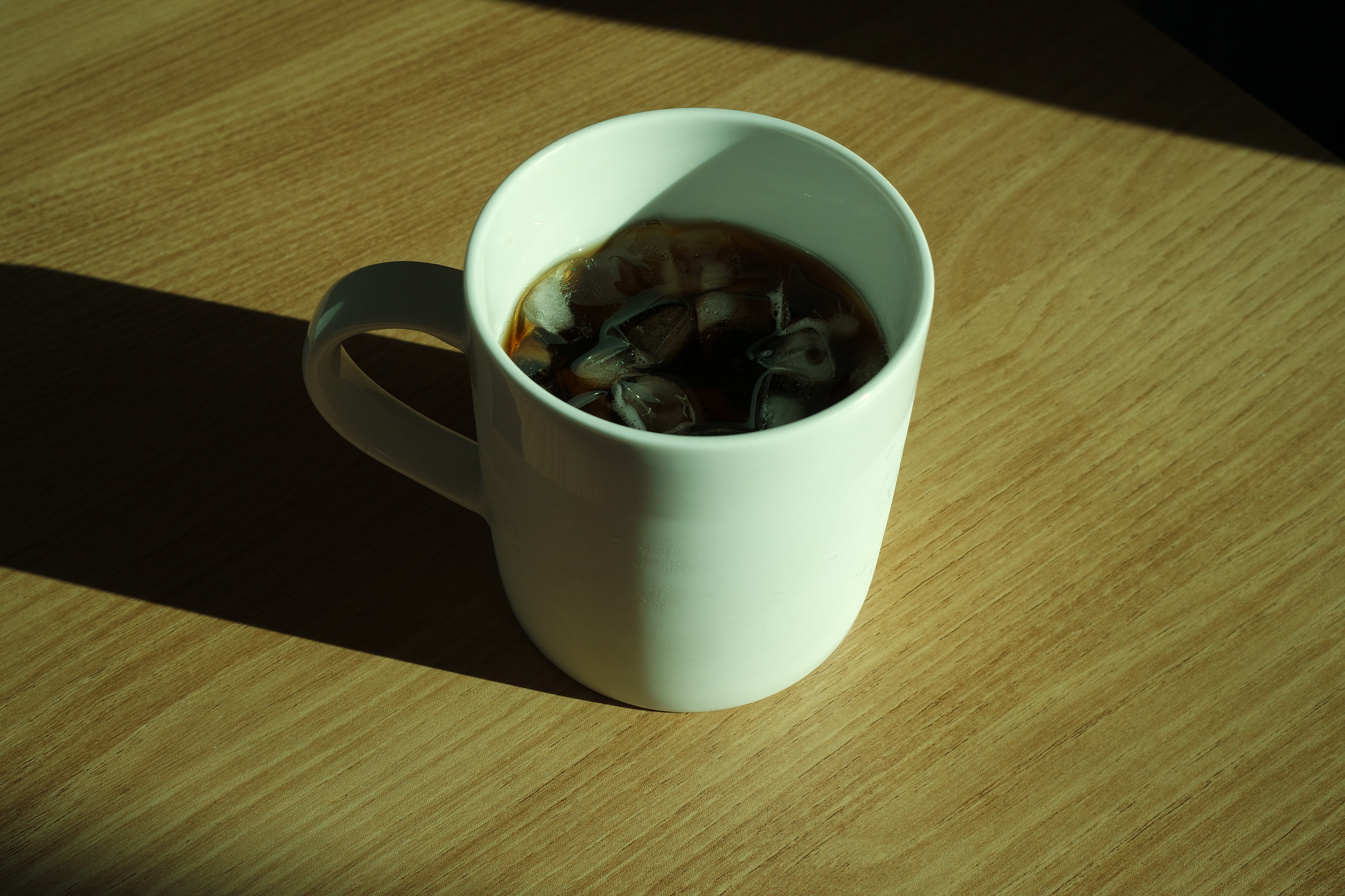 뜨거운 커피를 더 좋아하지만 아직 더워서 얼음을 가득 부어 아이스커피를 만들어 먹었다.