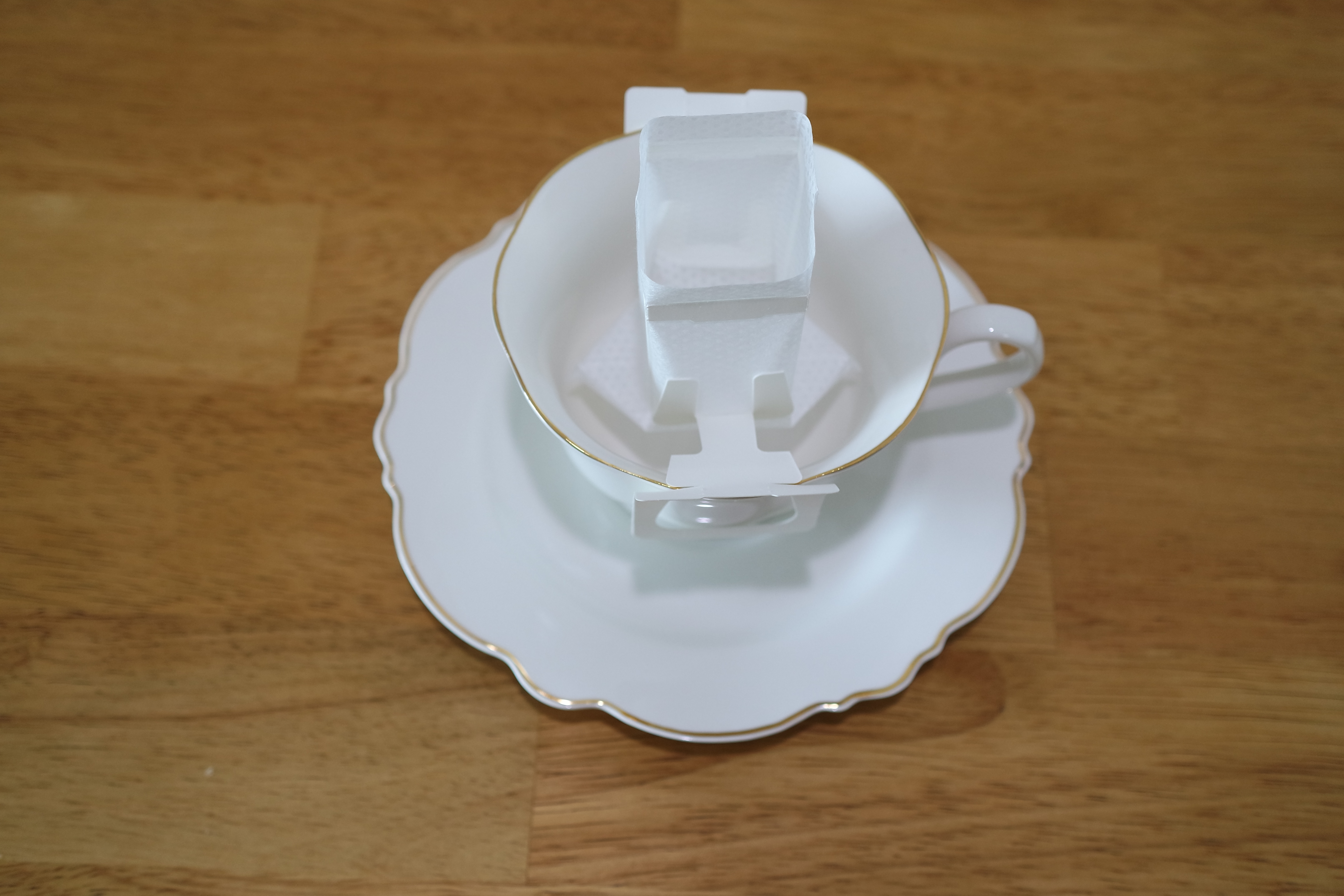 집에 있던 1회용 드립 필터를 꺼내 컵에 끼우고