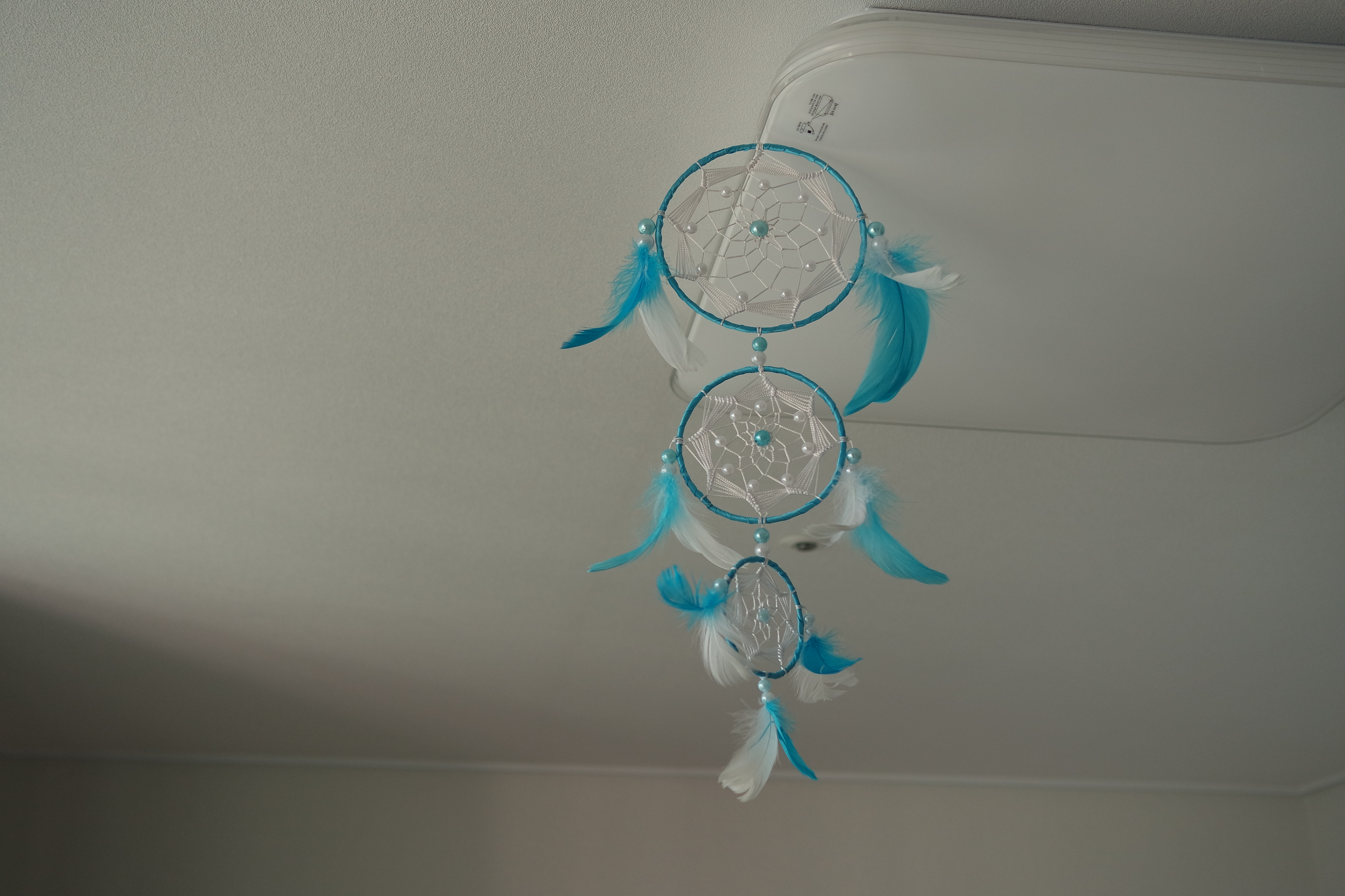 친구가 선물한 하늘색 드림캐처가 완전 마음에 든다.