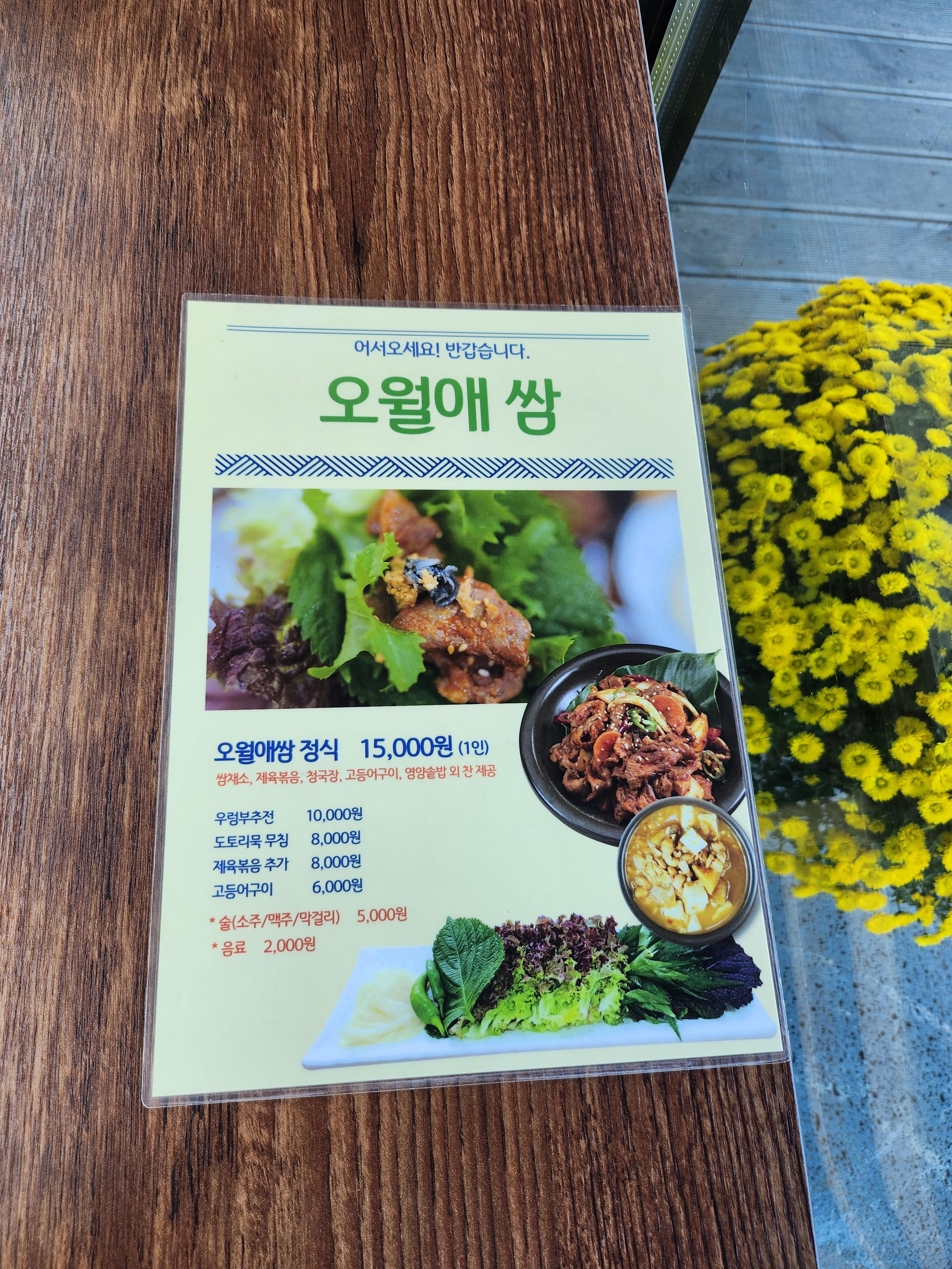 2. 아산 오월애쌈 메뉴 가격
