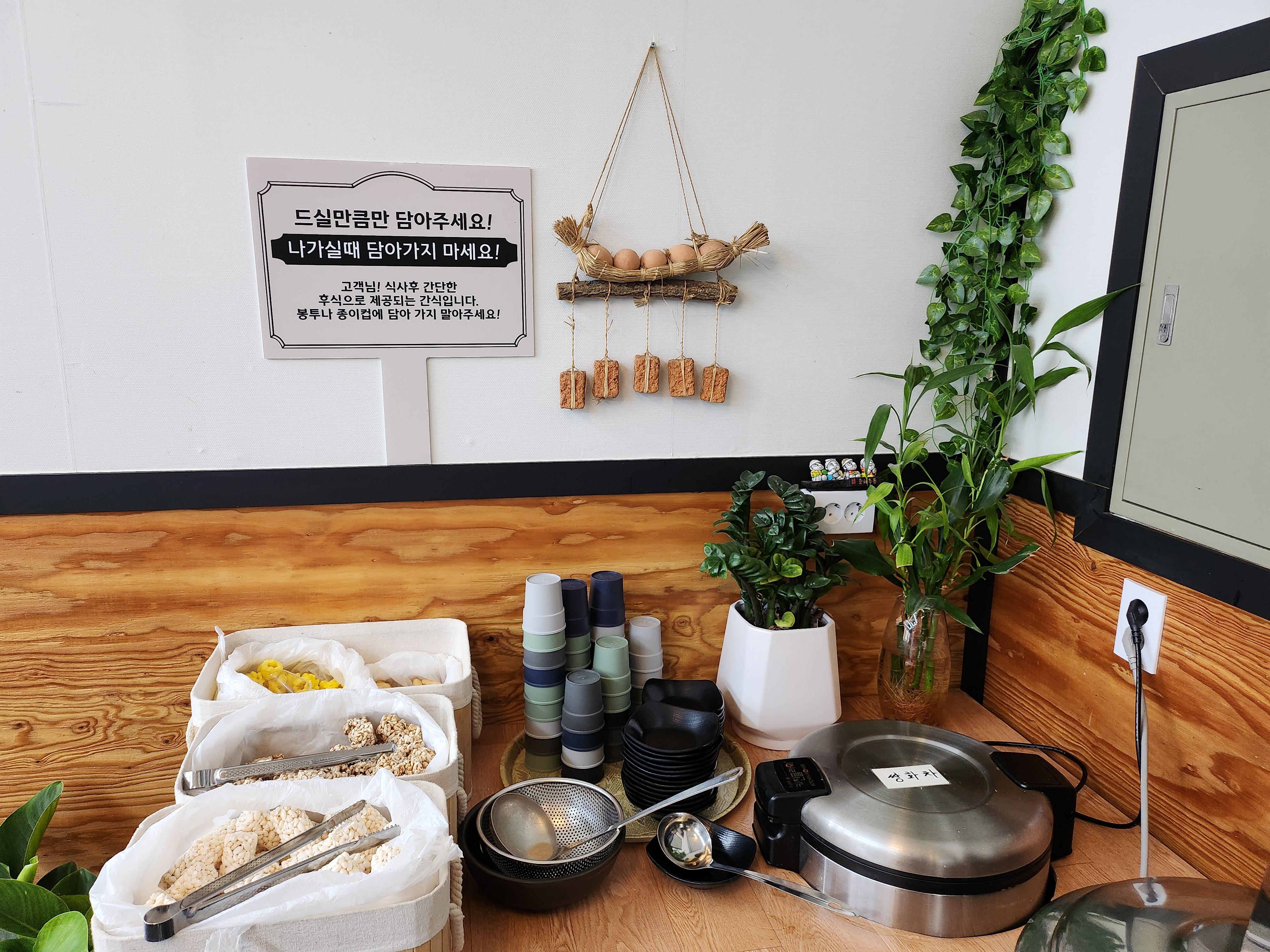식사 맛있게 하고 후식도 챙겨 먹었다. 후식 코너에 강정, 쌍화차, 미숫가루가 준비되어 있었다.