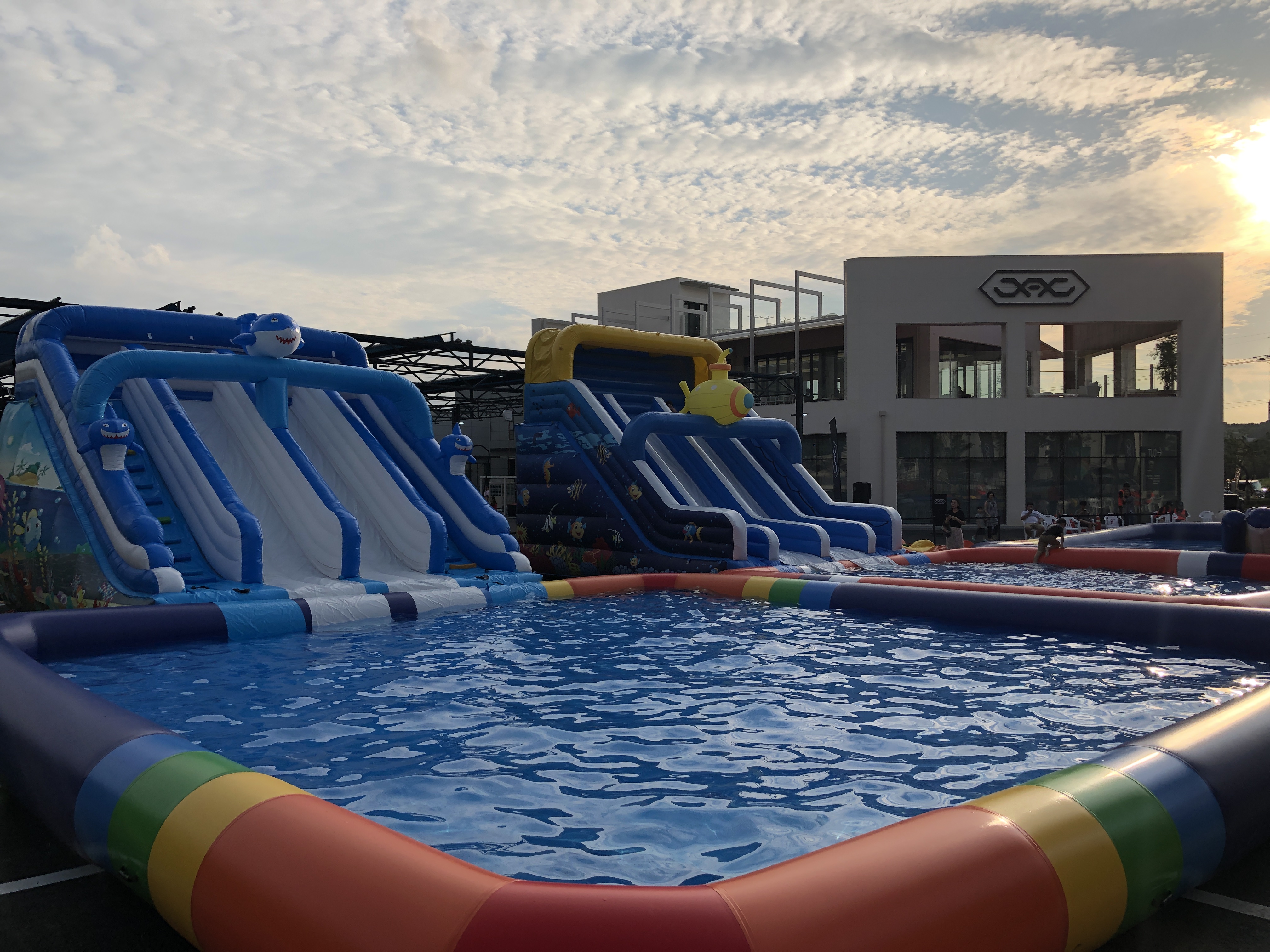 야외에 아이들이 놀 수 있는 워터파크 풀장도 마련되어 있었다.