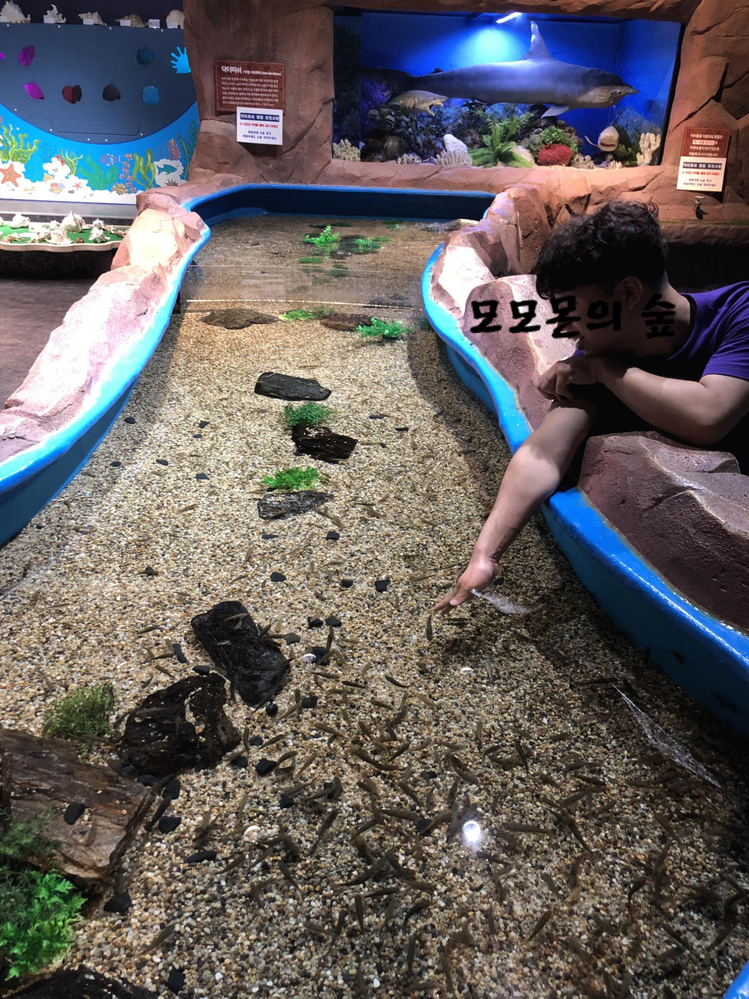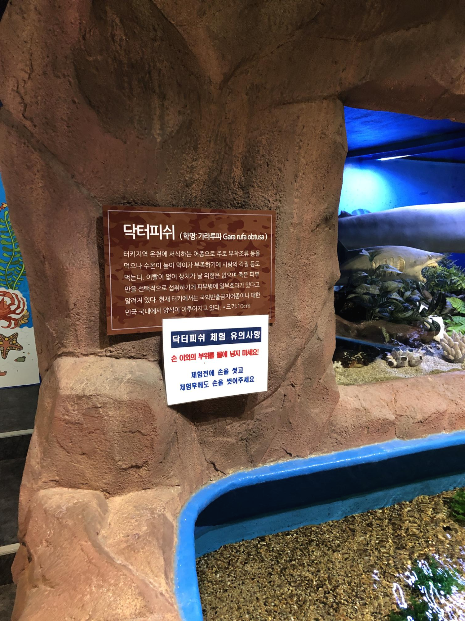 1층은 해양 동물 체험관이었다. 유일하게 살아있는 생물은 닥터피시뿐이었다.