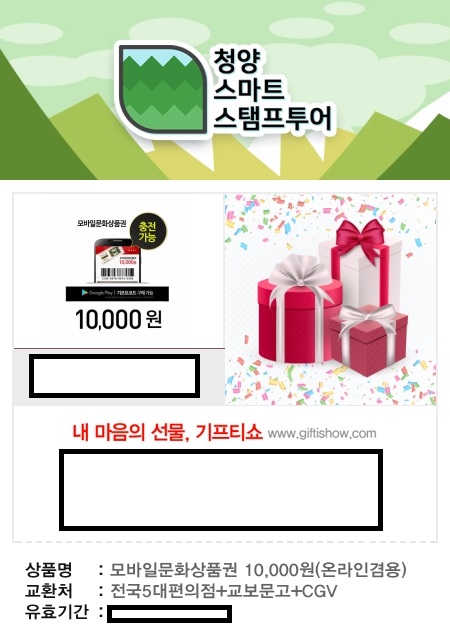 청양 여행을 마치고 5개 모은 스탬프로 경품을 신청했다.