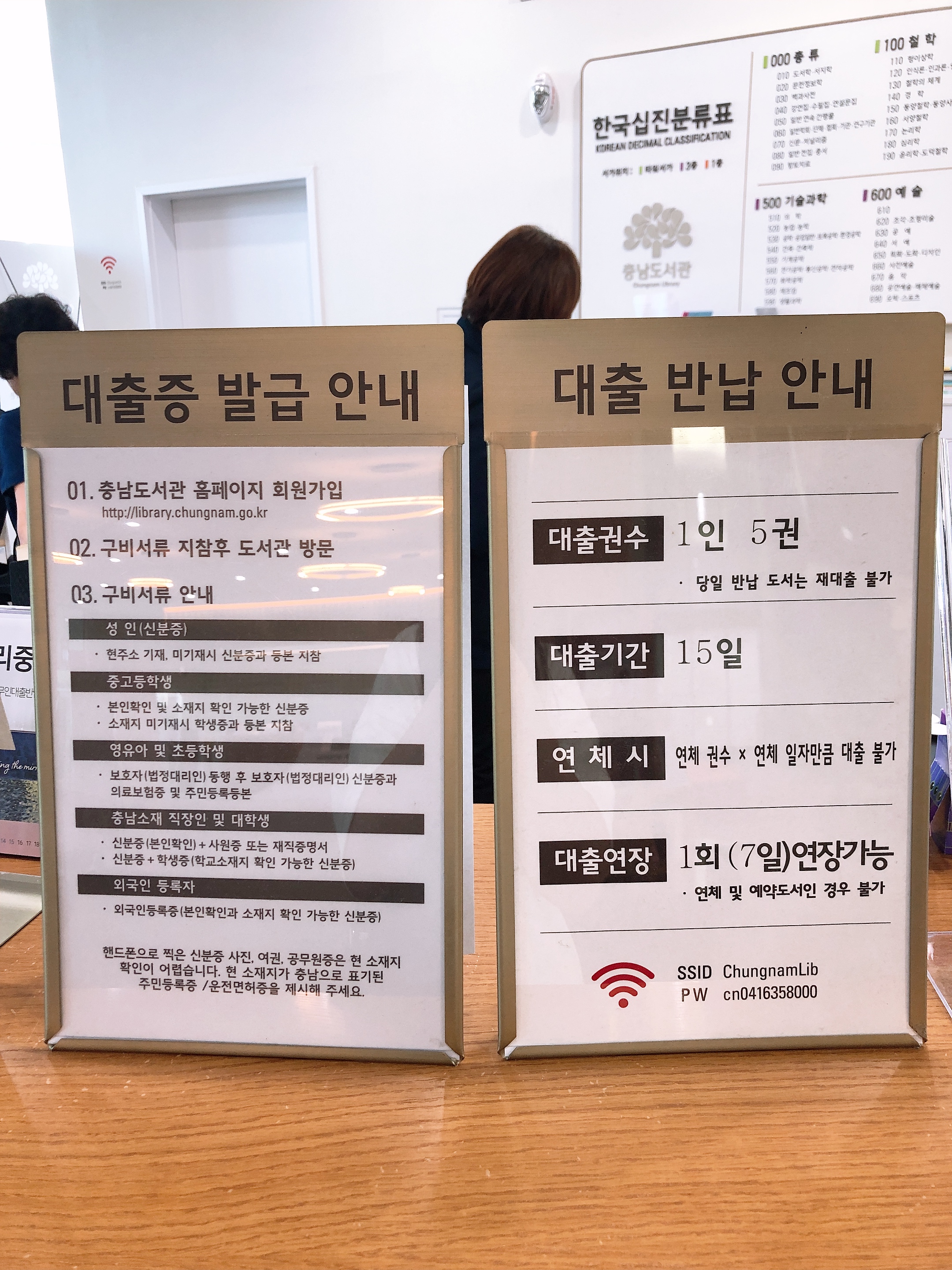 충남 도서관 출입은 누구나 가능하지만 책 대출을 대출증이 있어야만 가능하다.