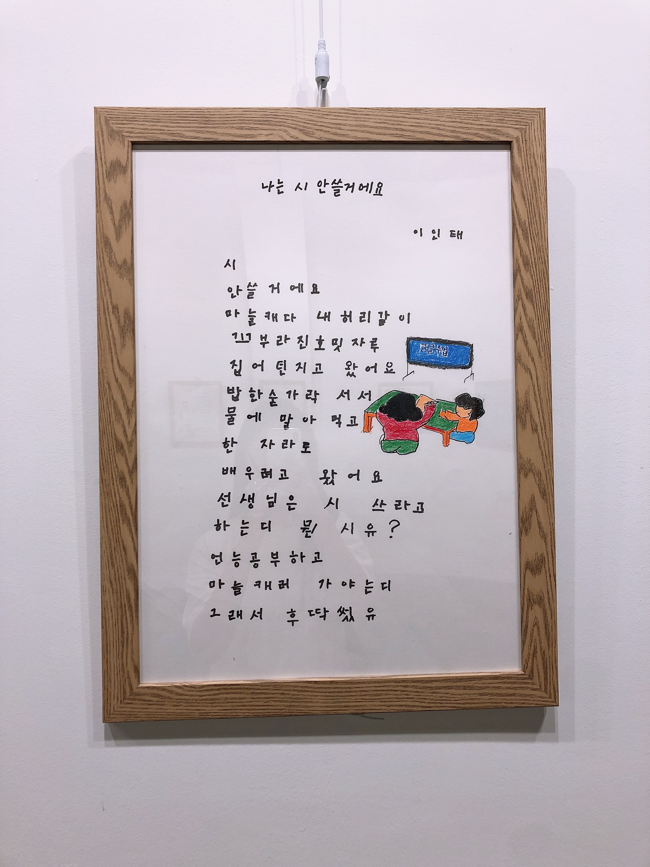 늦은 나이에 한글을 배우신 어르신들이 지은 시와 그림이 전시되어 있었다.
