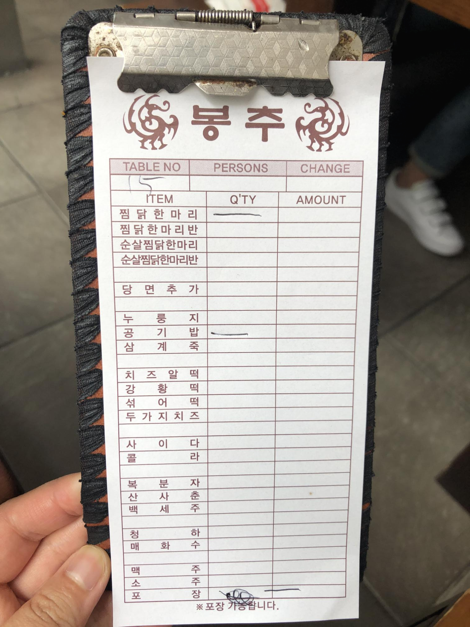 내가 방문한 곳은 봉추찜닭 강남주공공이점이었다.