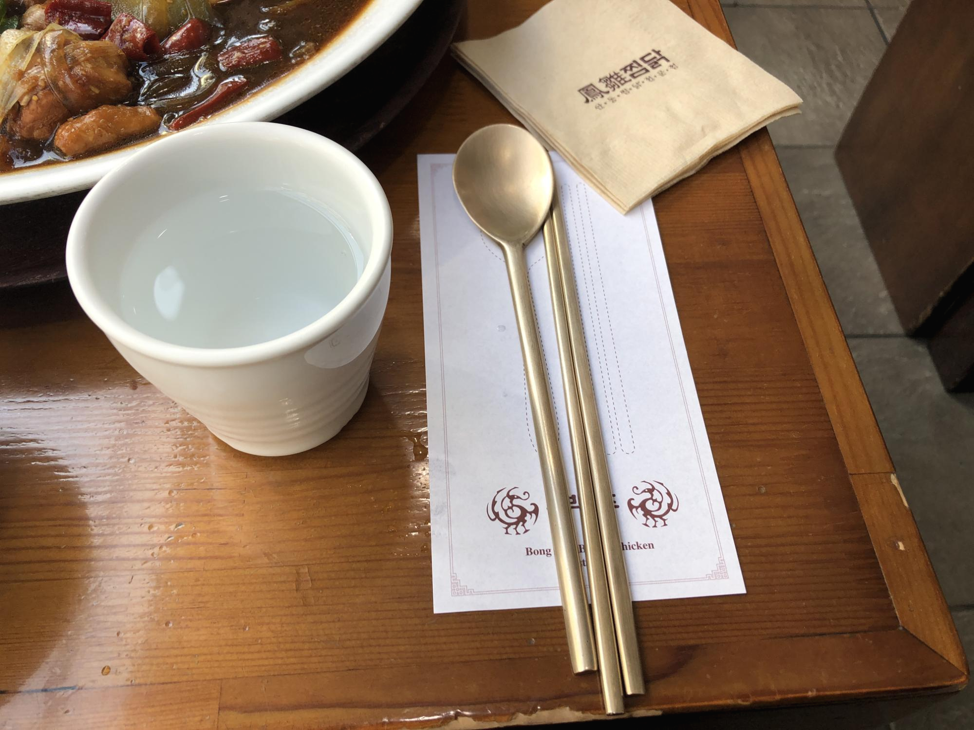주문을 하고 나니 수저와 컵, 물, 앞접시, 휴지와 물티슈를 가져다주셨다.