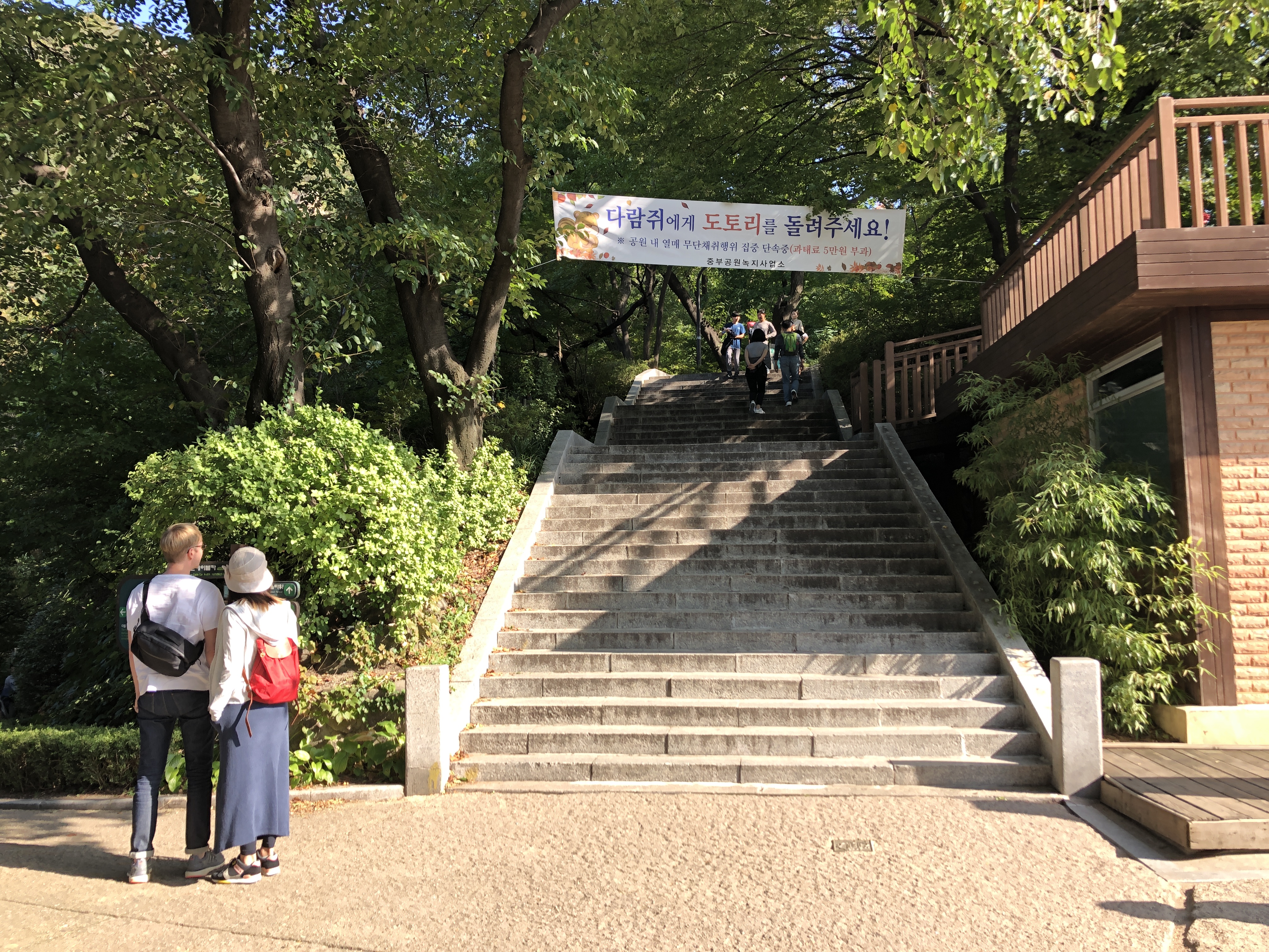 하지만 나는 트레킹도 하고 싶고 가을 숲도 느끼고 싶어서 남산 정상까지 걸어서 올라갔다.