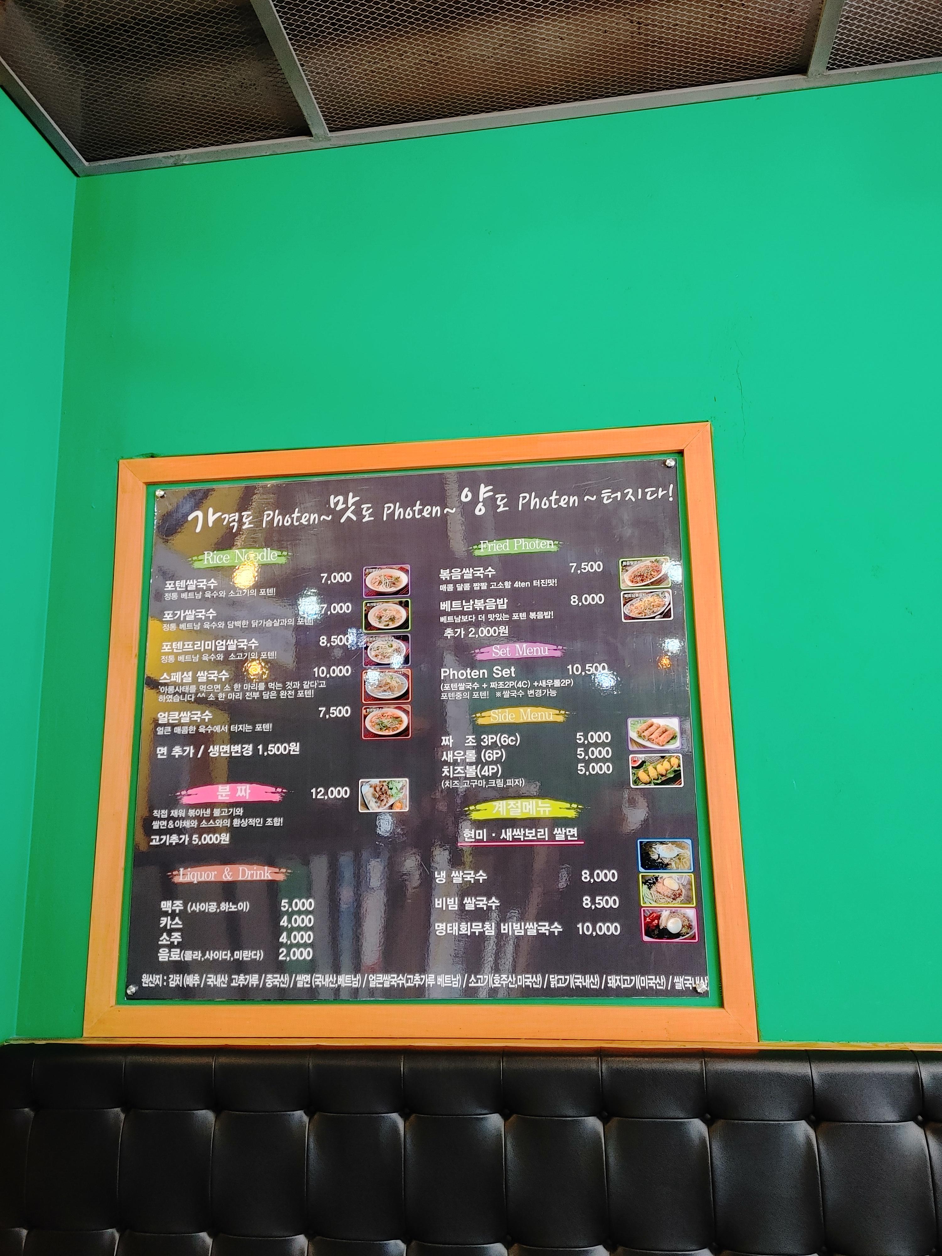 '포텐베트남'의 메뉴는 베트남 쌀국수, 분짜, 볶음밥이 주력이다. 사이드 메뉴로 짜조, 새우롤, 치즈볼이 있고, 계절 메뉴로 현미&새싹보리 쌀국수도 판매한다고 한다. 메뉴가 전체적으로 간소했고 가격도 저렴했다.