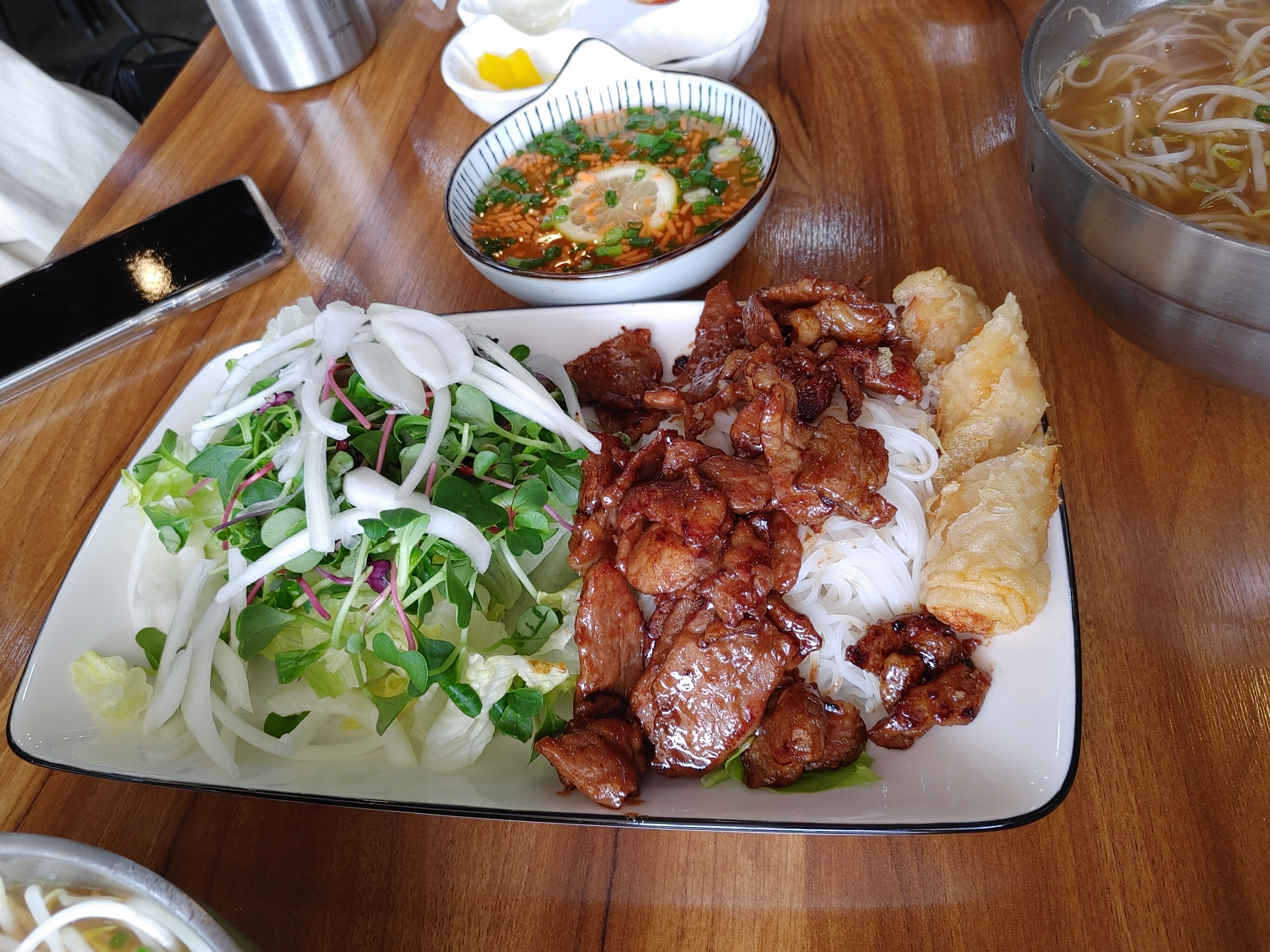 내가 정말 좋아하는 분짜! 싱싱한 채소와 맛있는 양념이 배어 있는 불고기, 쌀국수에 양념 소스까지 너무 완벽했다. 양까지 넉넉해서 정말 좋았다. 그리고 한쪽에는 짜조도 있었다. 라이스페이퍼에 고기와 숙주, 야채 등을 넣고 말아 튀긴 짜조는 갓 튀겨서 바삭바삭하고 참 맛있었다. 너무 좋아!!!!
